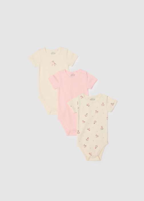 Тип продукта: Тройной комплект разноцветных боди с коротким рукавом для девочек из чистого хлопка