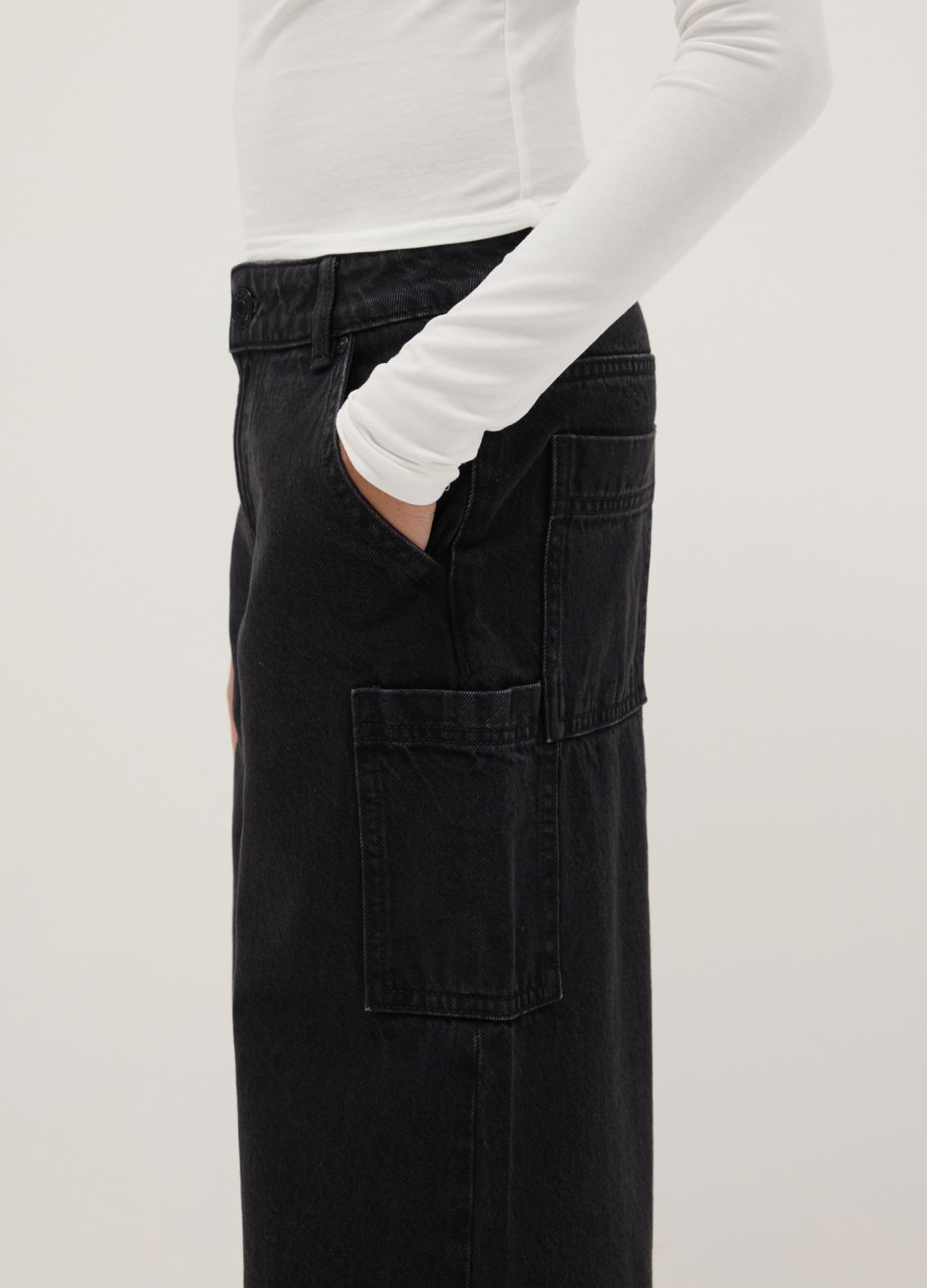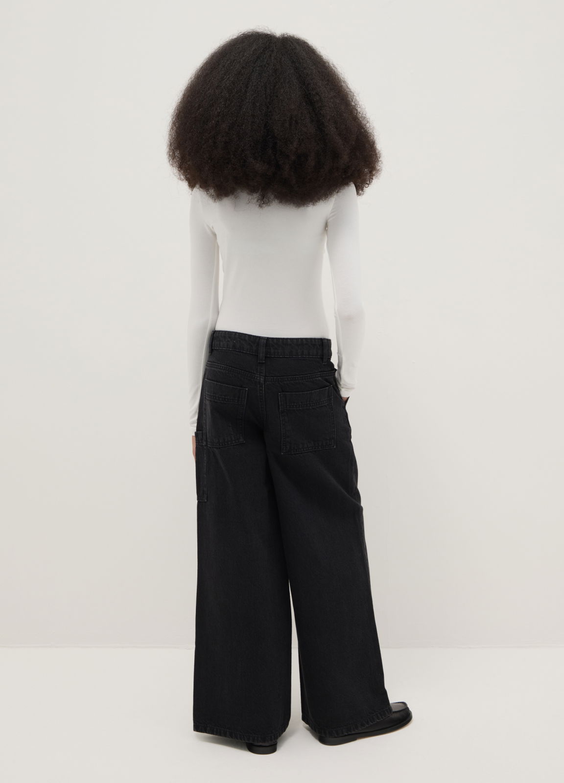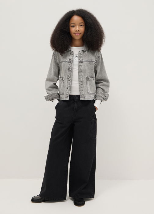 Тип продукта: Джинсы для девочек черного цвета из чистого хлопка с широкими штанинами и большими карманами