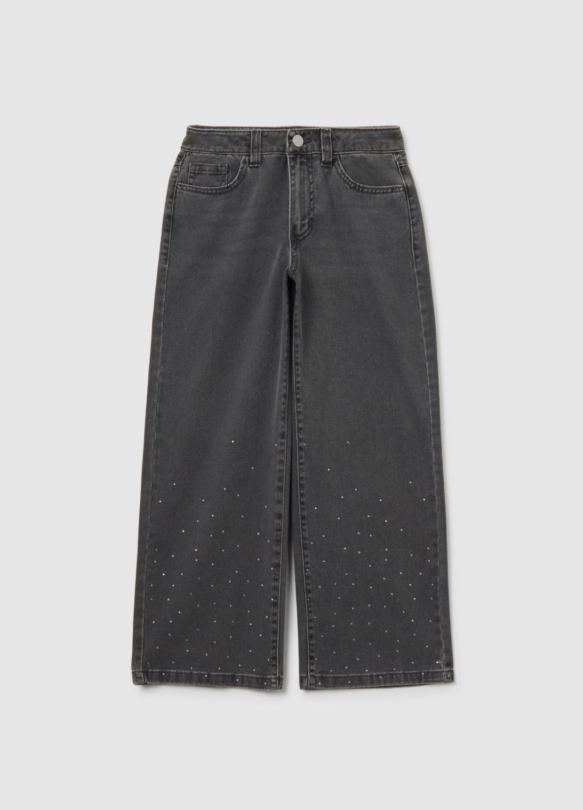 Тип продукта: Серые джинсы широкого кроя для девочек, из чистого хлопка