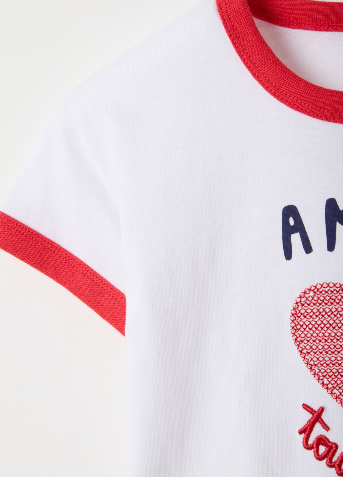 Характеристики: Разноцветная футболка с красным сердцем линии OVS KIDS, 100% хлопок, для девочек от 3 до 10 лет. Круглый вырез, короткие рукава, прямой крой, легкая и дышащая, идеальна для жаркого лета.