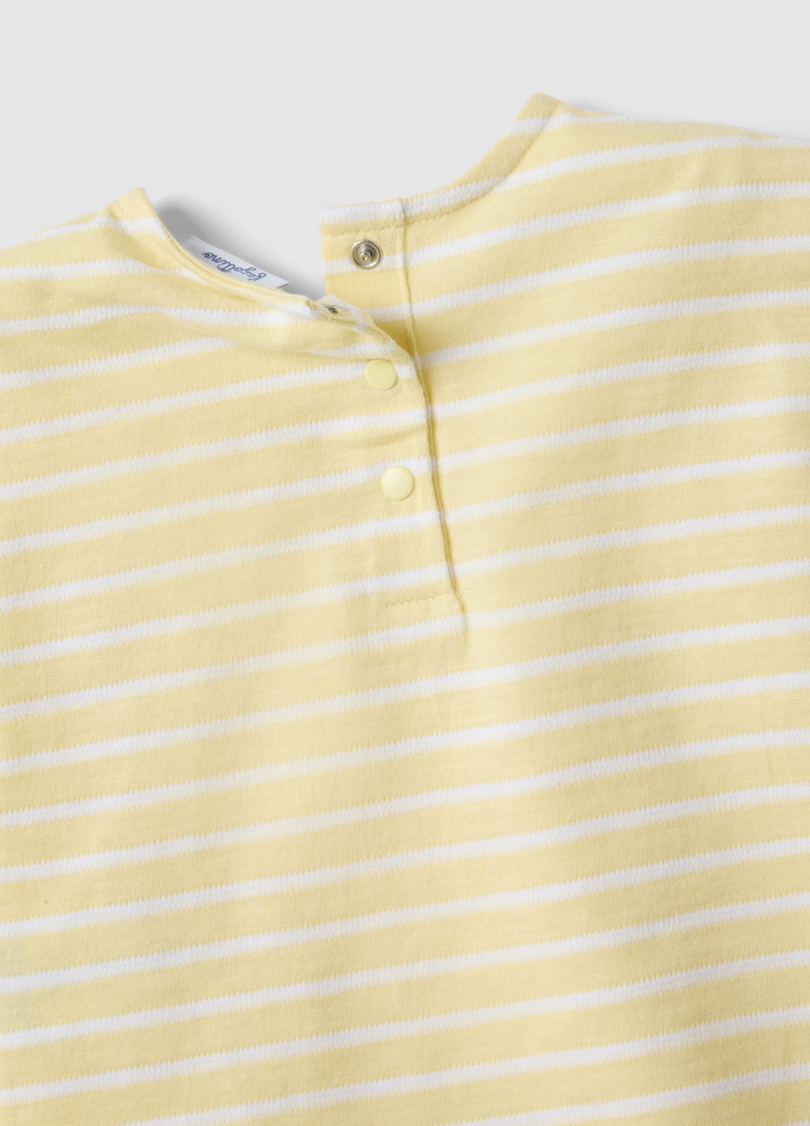 Характеристики: Футболка с разноцветными полосками и коротким рукавом из линии Fagottino идеально подходит для девочек от 9 до 36 месяцев. Сделана из 100% хлопка, обеспечивает комфорт и мягкость для кожи. Дизайн с полосками и разноцветными сердечками добавляет живости. Круглый ворот и обычный крой делают её идеальной для любого случая и облегчают одевание.