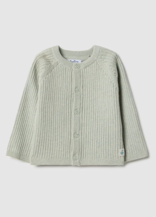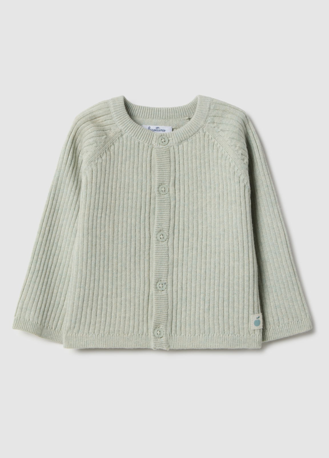Тип продукта: Зелёный рифлёный кардиган из чистого хлопка для малышей, regular fit, с пуговицами