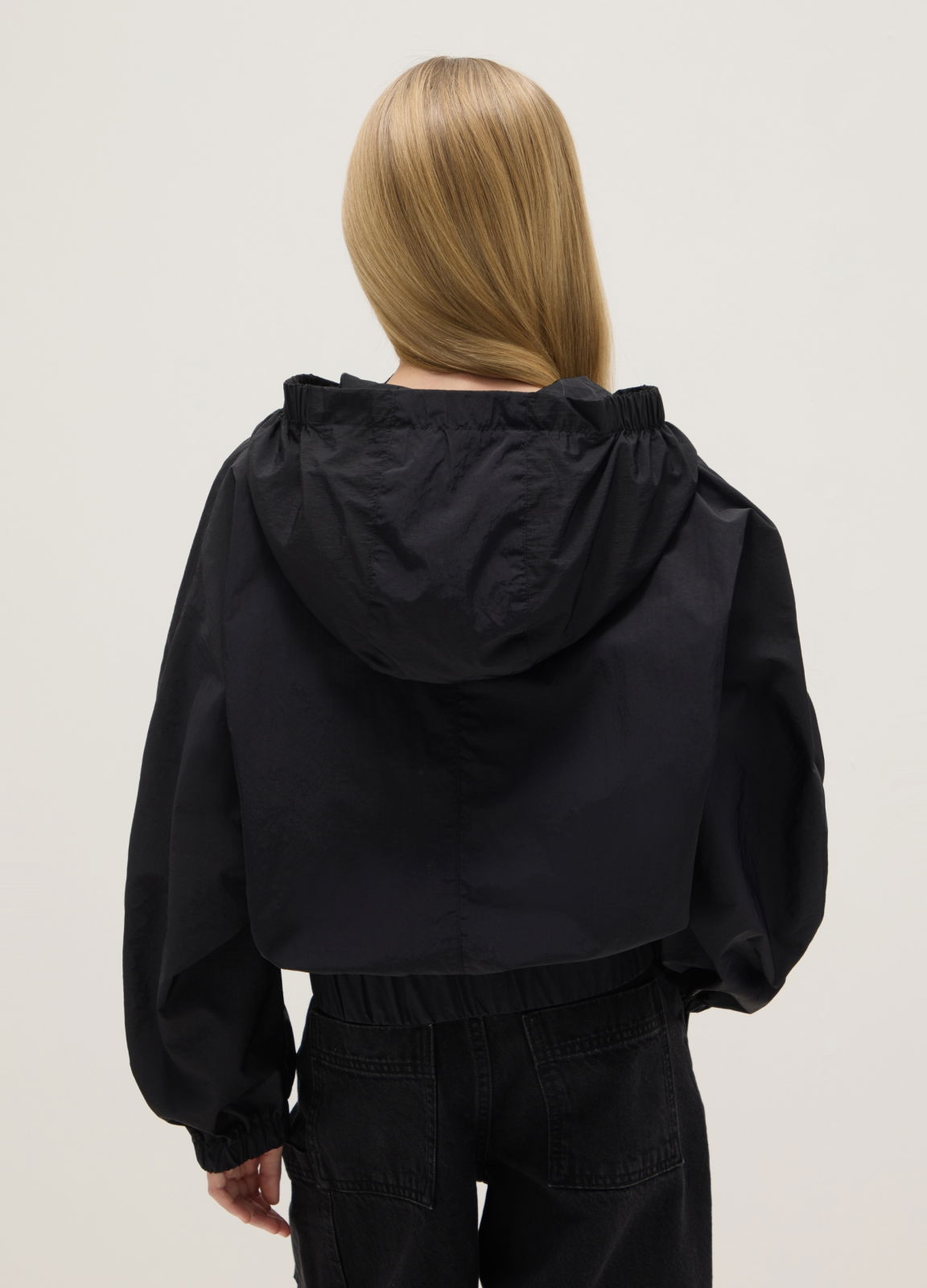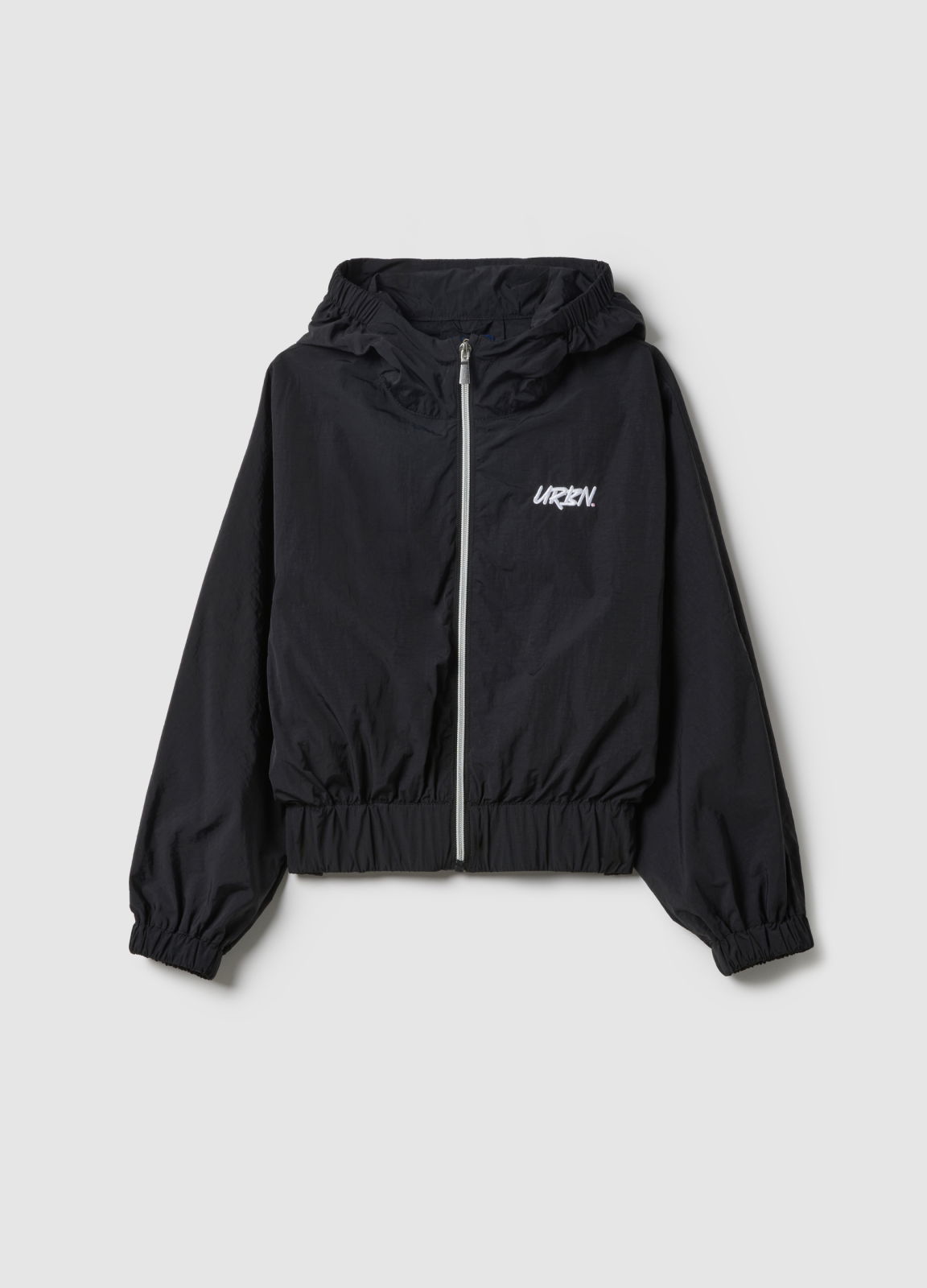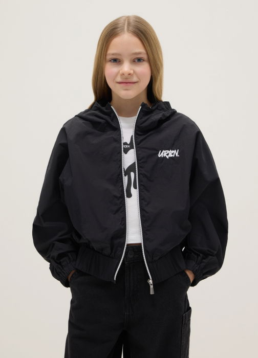 Тип продукта: Легкая черная куртка для девочек с молнией и капюшоном, стандартный крой