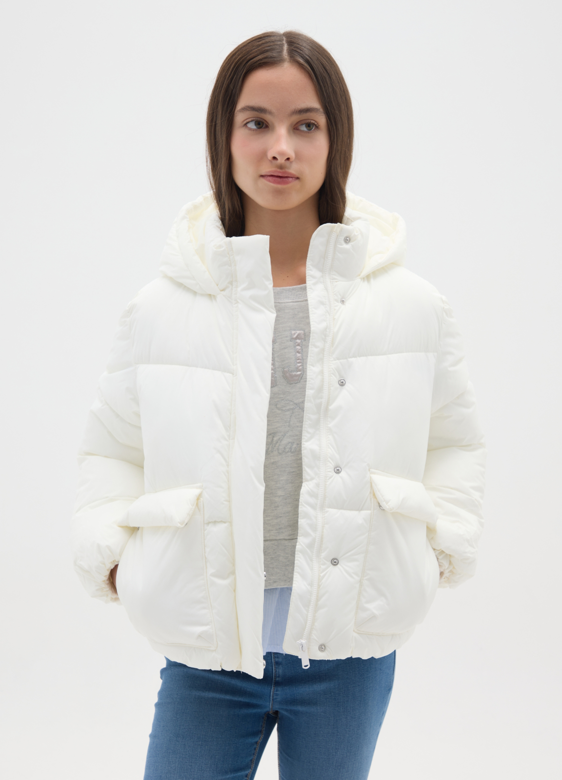 Тип продукта: Белая пуховая куртка «Iconic» для девочек с капюшоном