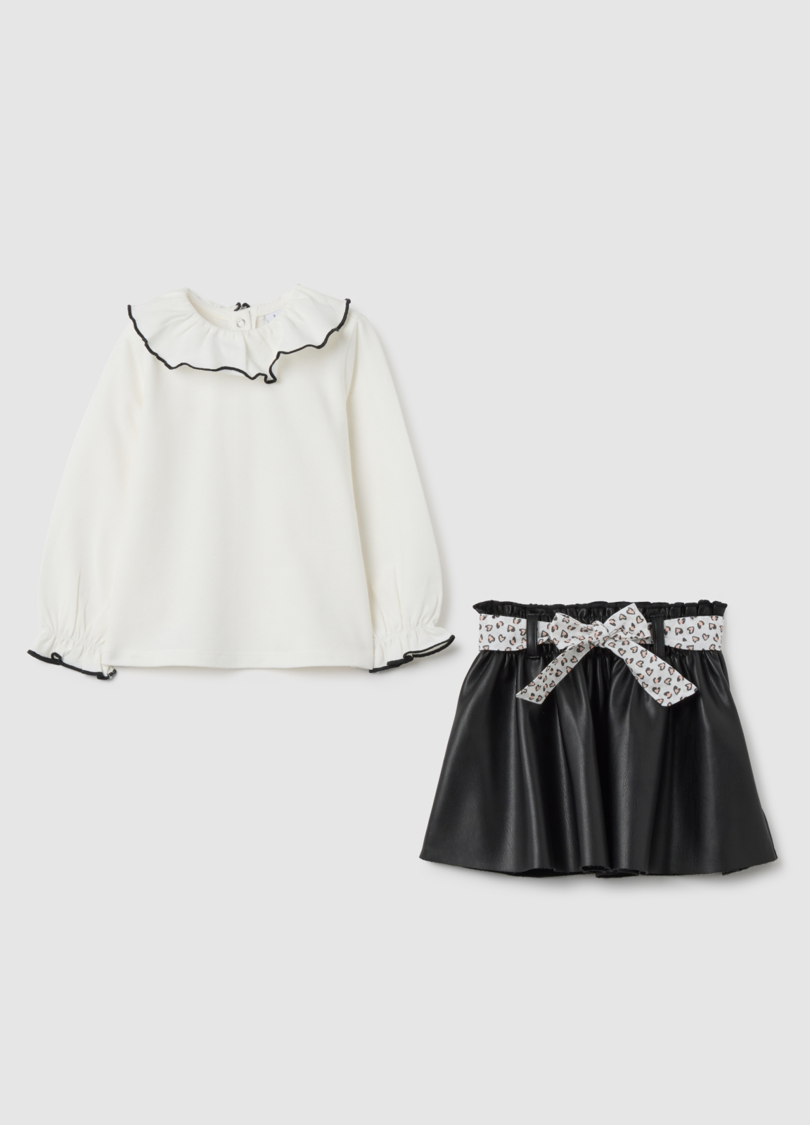 Характеристики: Разноцветный комплект для малышей, стрейч-хлопок, Fagottino, 9–36 месяцев — комфортный и практичный, длинные рукава и стильный воротник, чёрная юбка с бантиком дополняет образ
