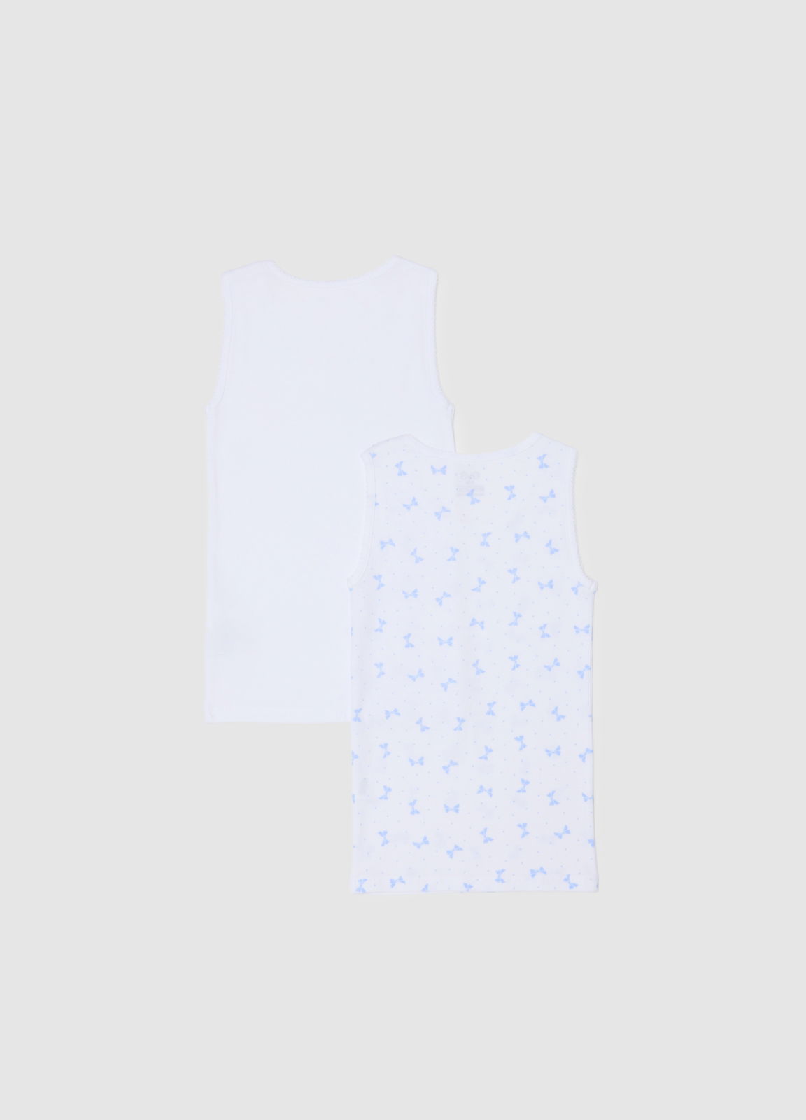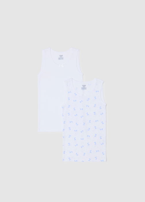 Характеристики: Этот двойной комплект белых маек из линии OVS KIDS предназначен для девочек от 3 до 10 лет. Из органического хлопка, с круглым вырезом и тонкими бретелями. Одна майка украшена бантиками, идеально подходит для лета или как нижний слой.