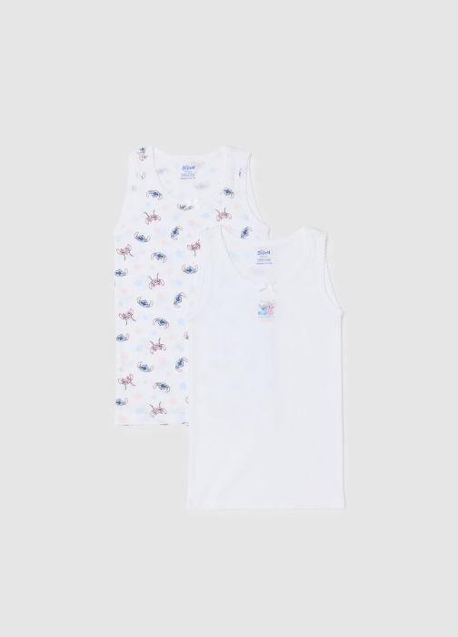 Характеристики: Набор из двух белых маек из линии Disney предназначен для девочек от 3 до 10 лет. Изготовлены из чистого хлопка, они обеспечивают мягкость и комфорт для чувствительной кожи. Модель без рукавов с узкими бретелями обеспечивает стандартную посадку, а принт Stitch добавляет оригинальности.