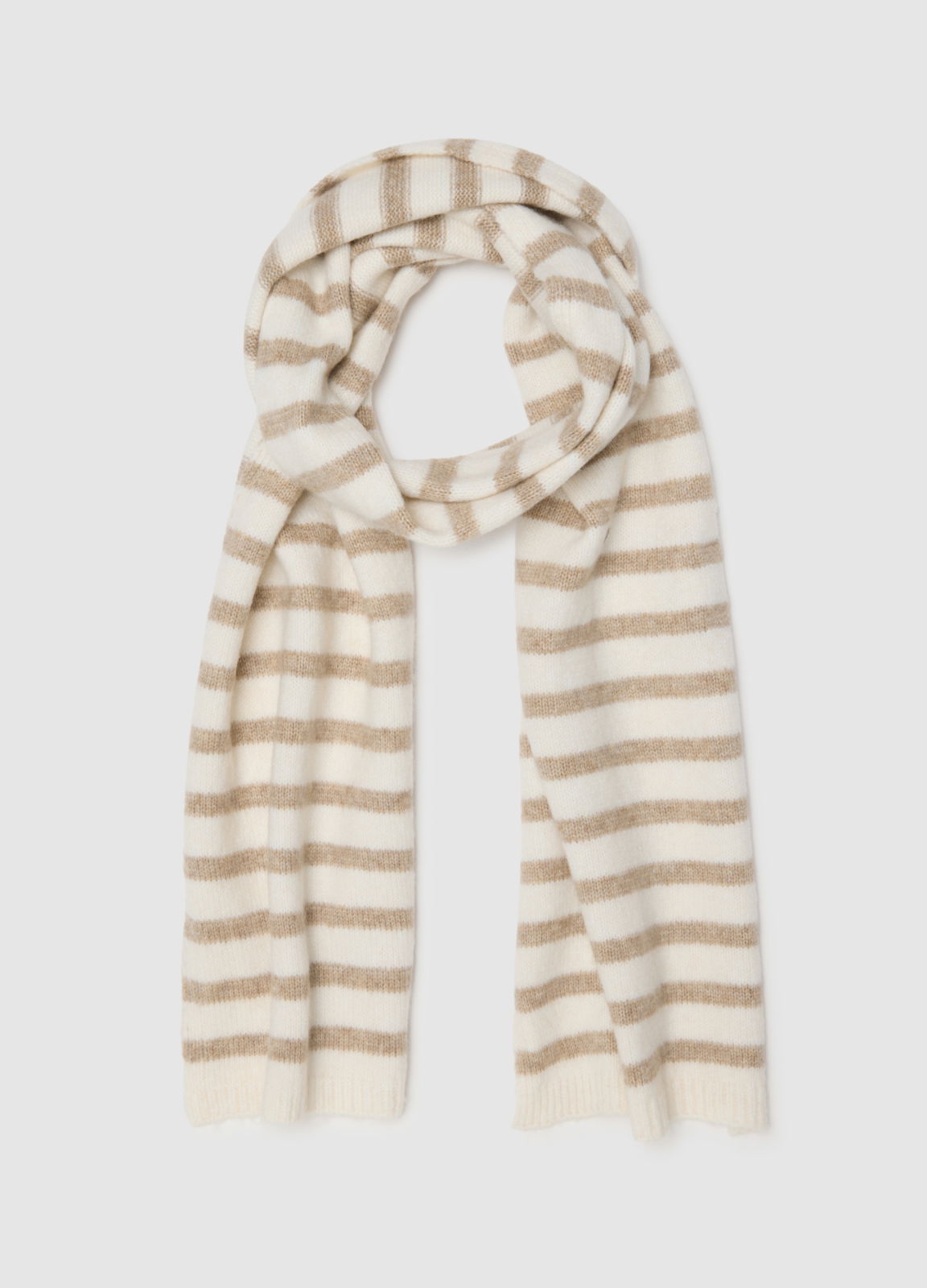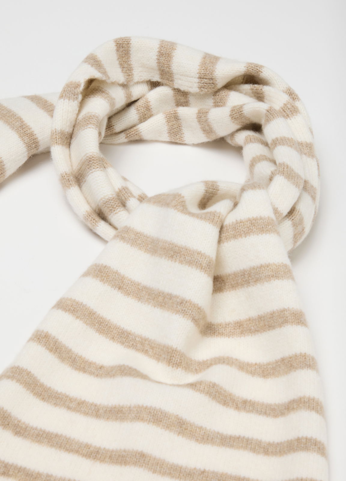 Тип продукта: Бежевый детский шарф с белыми полосками