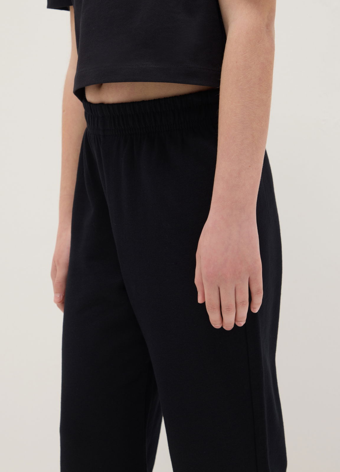 Характеристики: Черные джоггеры из 100% хлопка из линии OVS KIDS предназначены для девочек от 10 до 15 лет. С эластичным поясом, стандартная посадка, обеспечивают комфорт и практичность в любой ситуации. Универсальная модель, легко сочетается с разной одеждой, идеально подходит для повседневного гардероба.