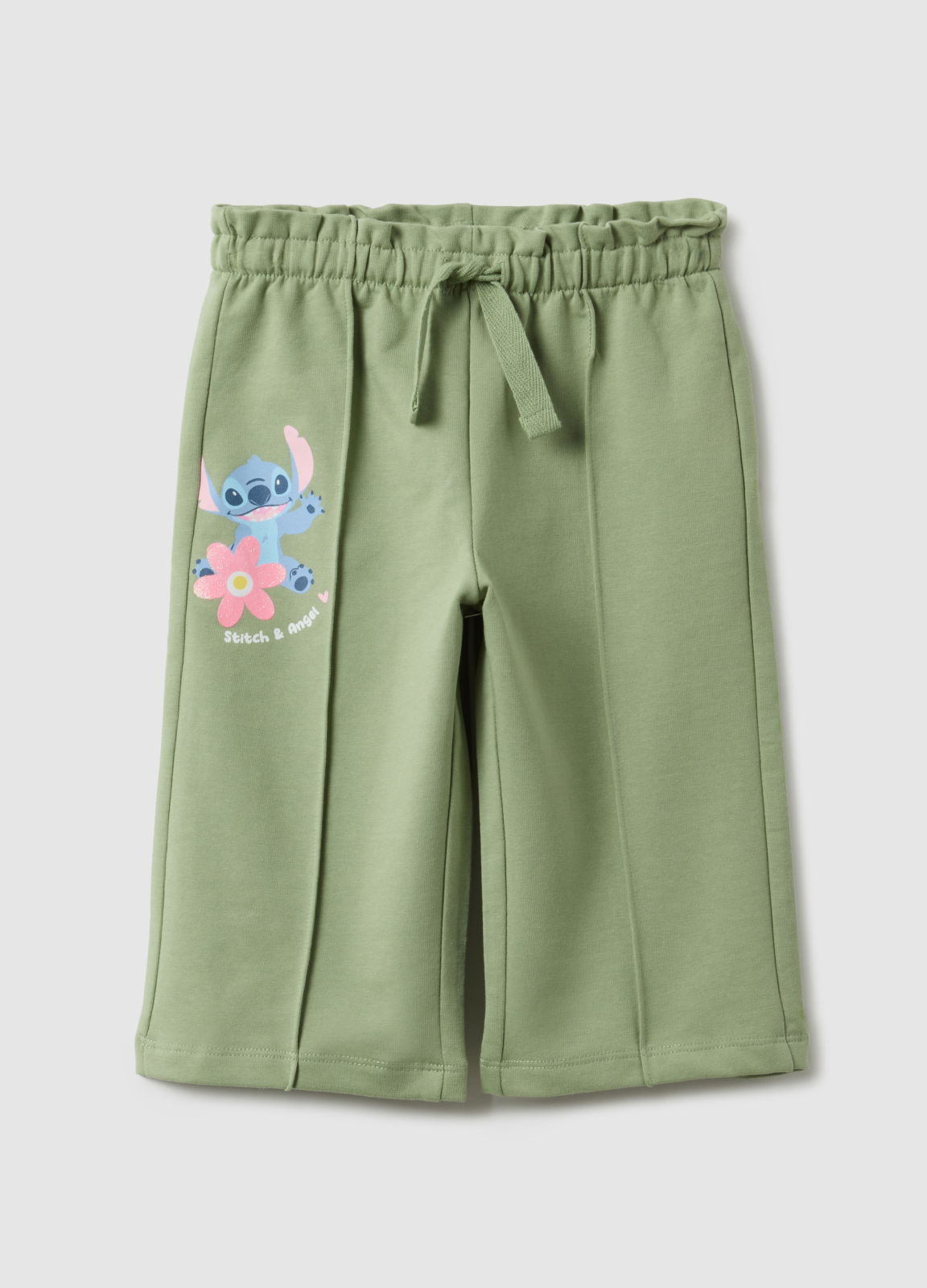 Характеристики: Зелёные брюки paper bag из линии Disney выполнены из эластичного хлопка, обеспечивая комфорт и свободу движений для девочек от 9 до 36 месяцев. Украшены принтом Stitch и оснащены эластичным поясом с регулируемым ремнём.