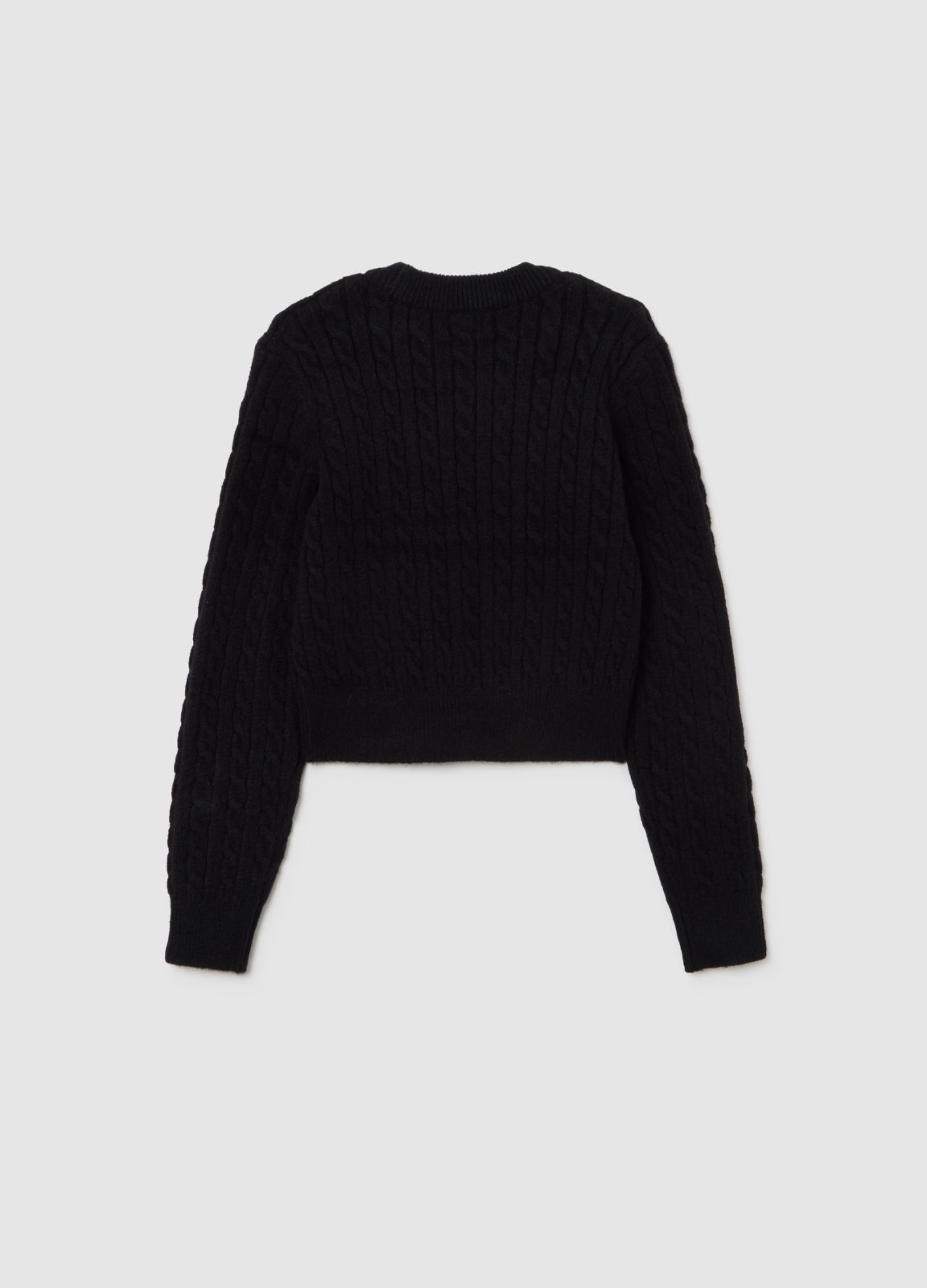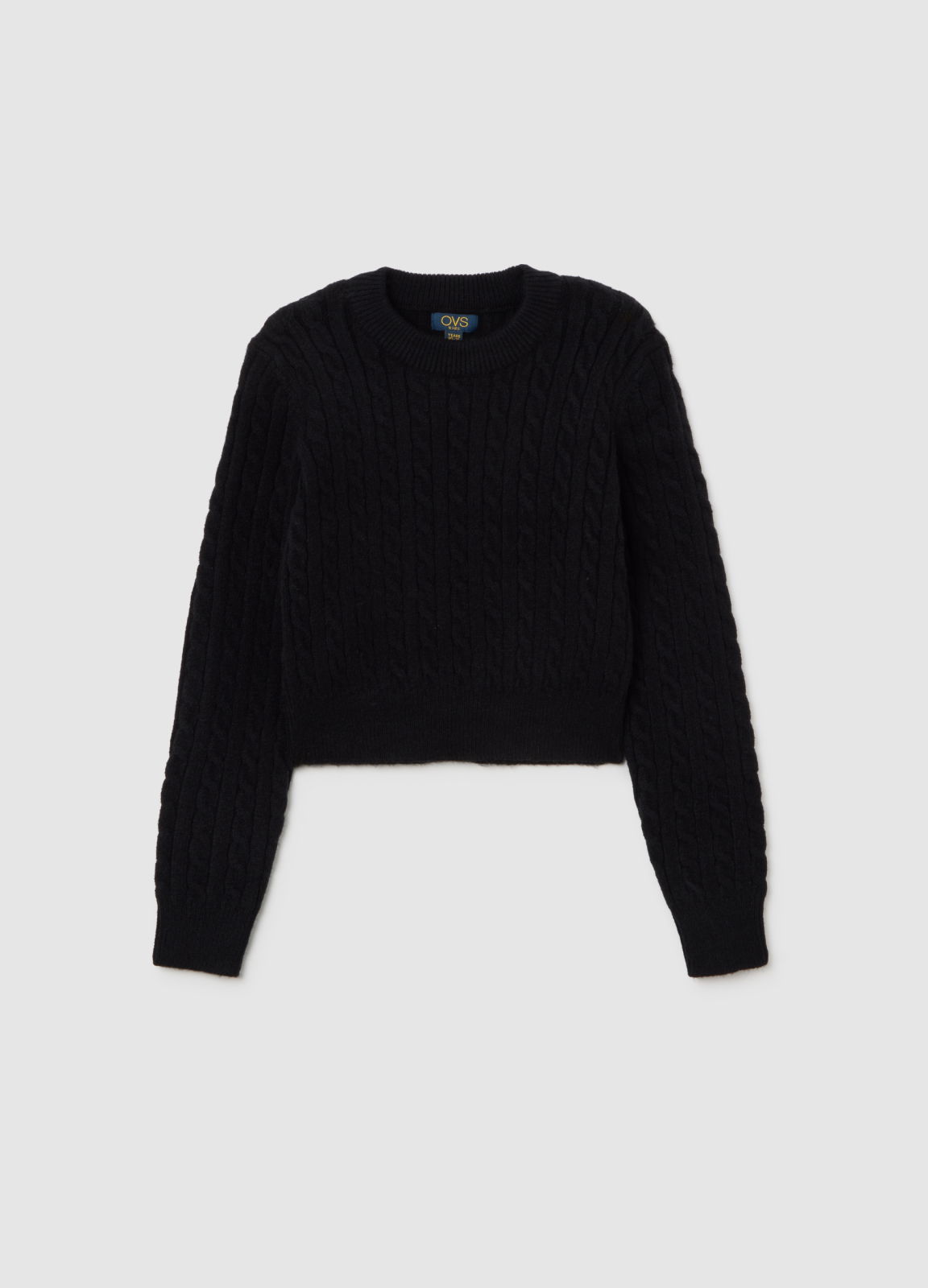 Тип продукта: Чёрный свитер с круглым вырезом и узором «коса» для девочек, прямого кроя