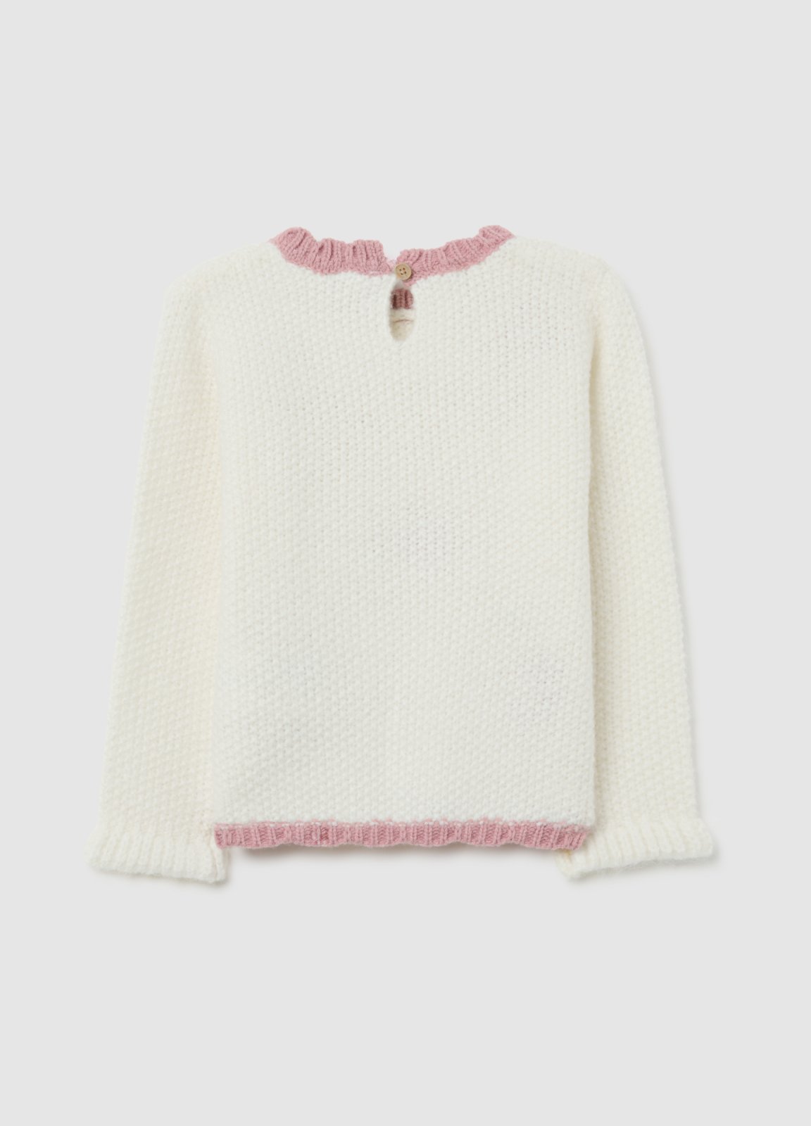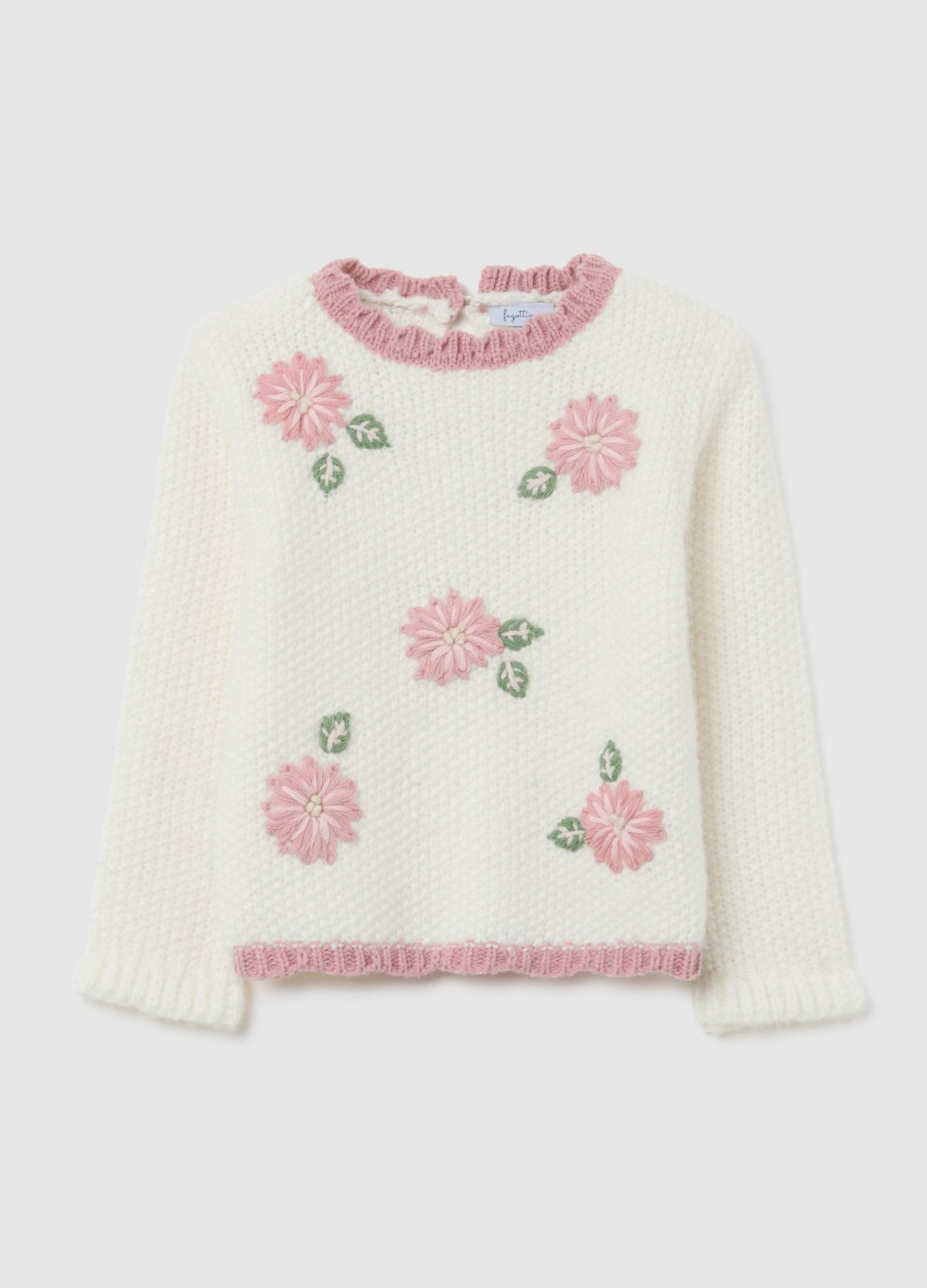 Характеристики: Белый свитер для девочек от 9 до 36 месяцев из линии Fagottino украшен вышитыми цветочными деталями. Розовая резинка на воротнике и застёжка на пуговицы сзади облегчают одевание. Идеален для повседневной активности девочек: практичный, универсальный и тёплый для зимнего сезона.