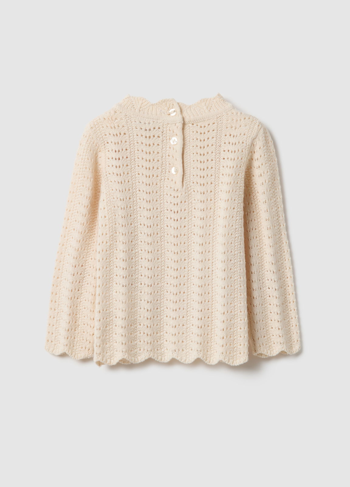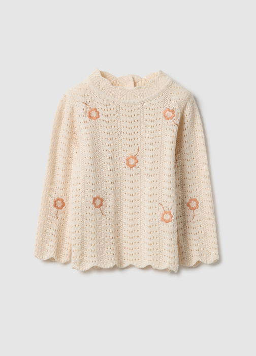 Тип продукта: Бежевый перфорированный джемпер для девочек из 100% хлопка, стандартный крой, с вышивкой