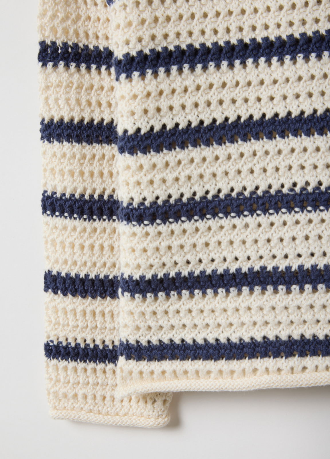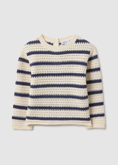 Тип продукта: Свитер из чистого хлопка с бело-синими полосками для девочек, стандартный крой