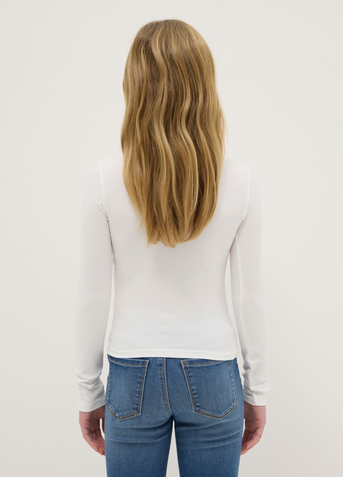 Тип продукта: Белый приталенный топ для девочек с длинным рукавом из хлопковой смеси