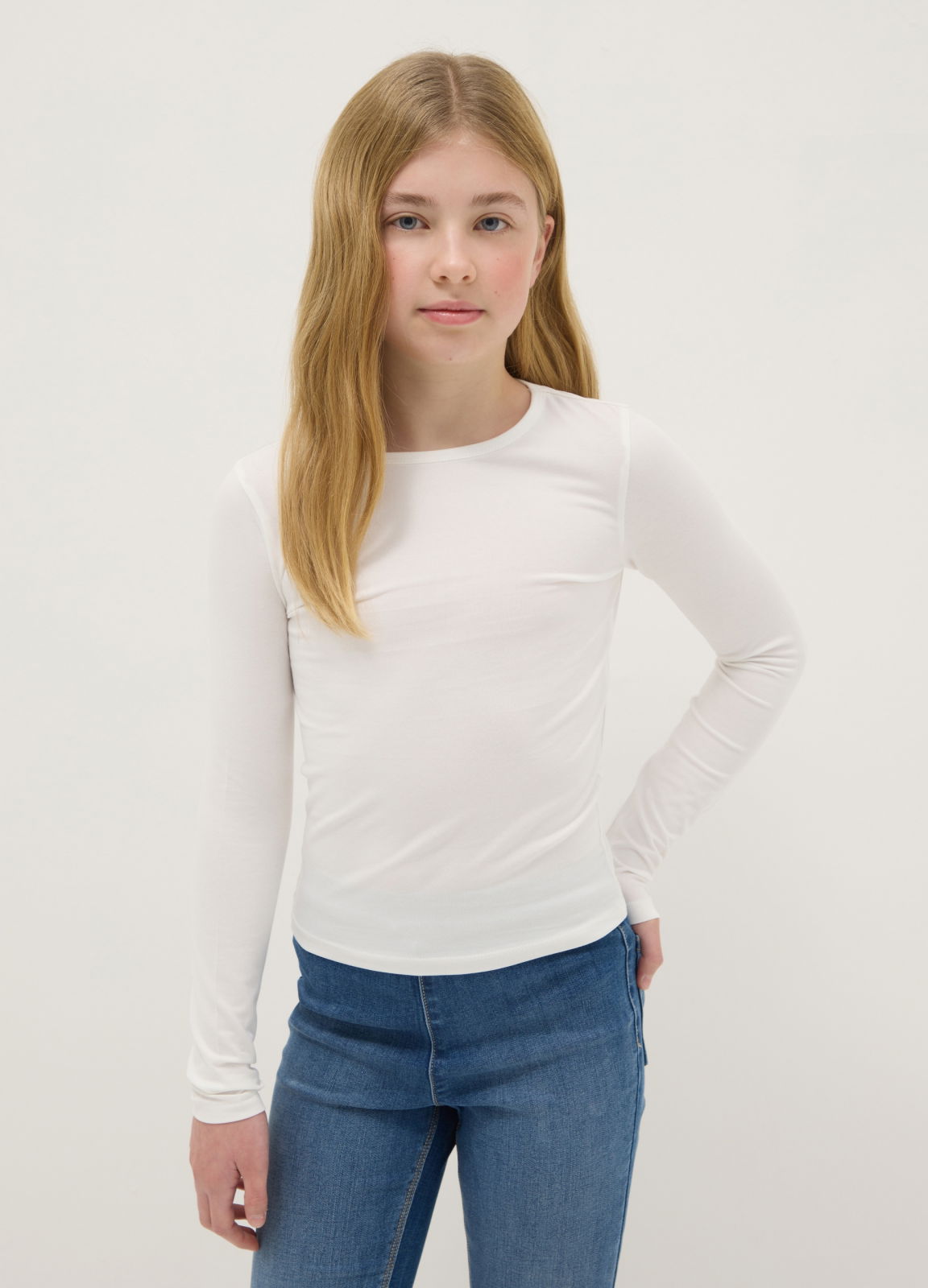 Характеристики: Белый топ с длинным рукавом из линии OVS KIDS идеально подходит для девочек от 10 до 15 лет. Изготовлен из эластичного хлопка, обеспечивает комфорт и облегающую посадку благодаря мягкой ткани и круглому вырезу. Белый цвет делает его универсальным для любого случая.