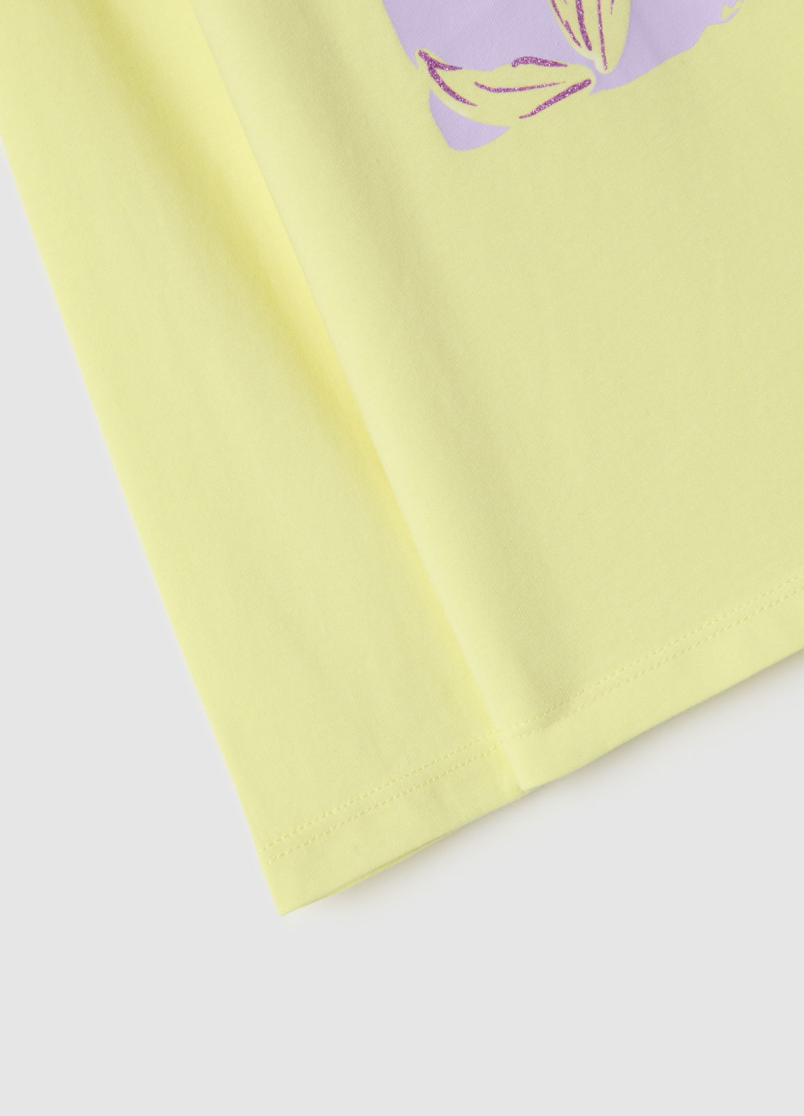 Тип продукта: Желтая футболка для девочек из 100% хлопка с принтом, прямой крой