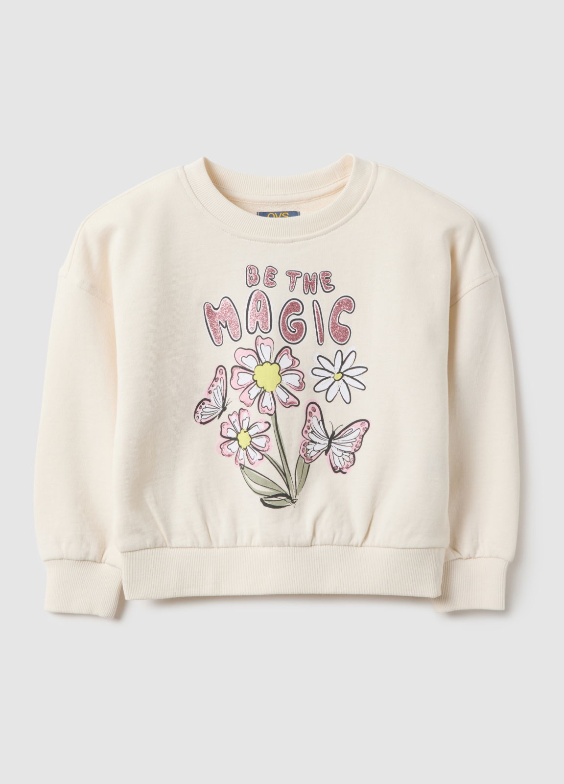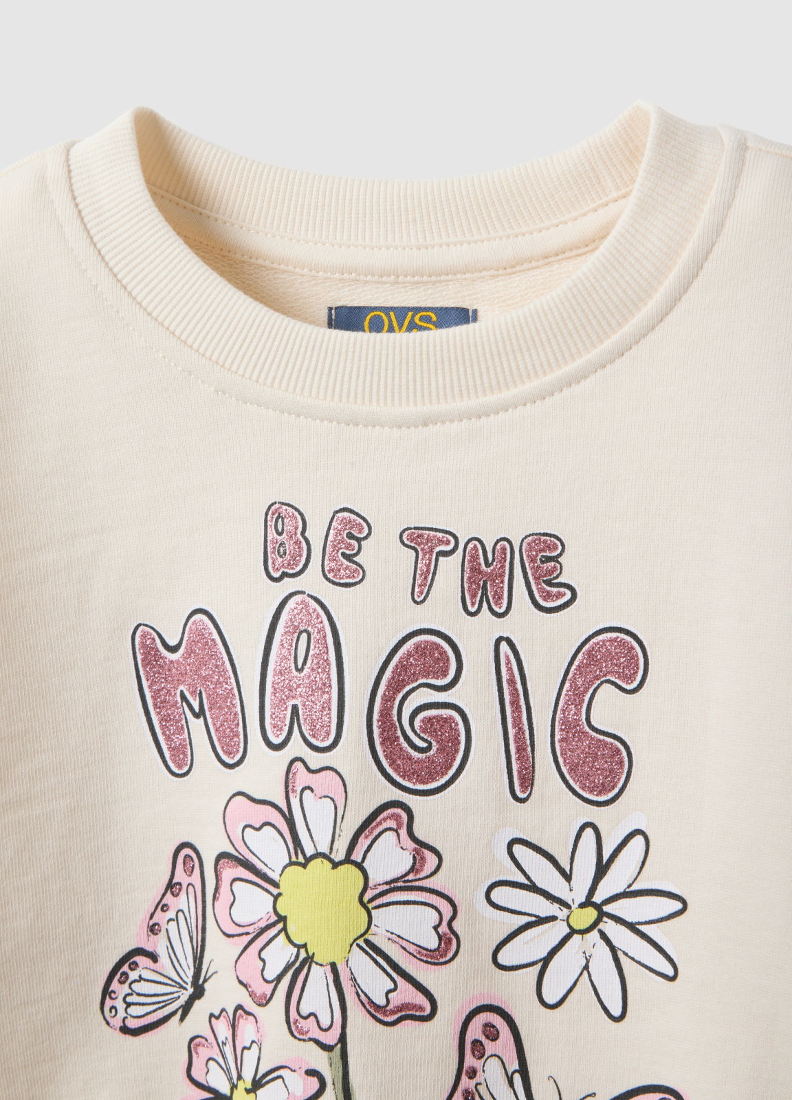 Тип продукта: Белая хлопковая толстовка для девочек, обычный крой с украшениями