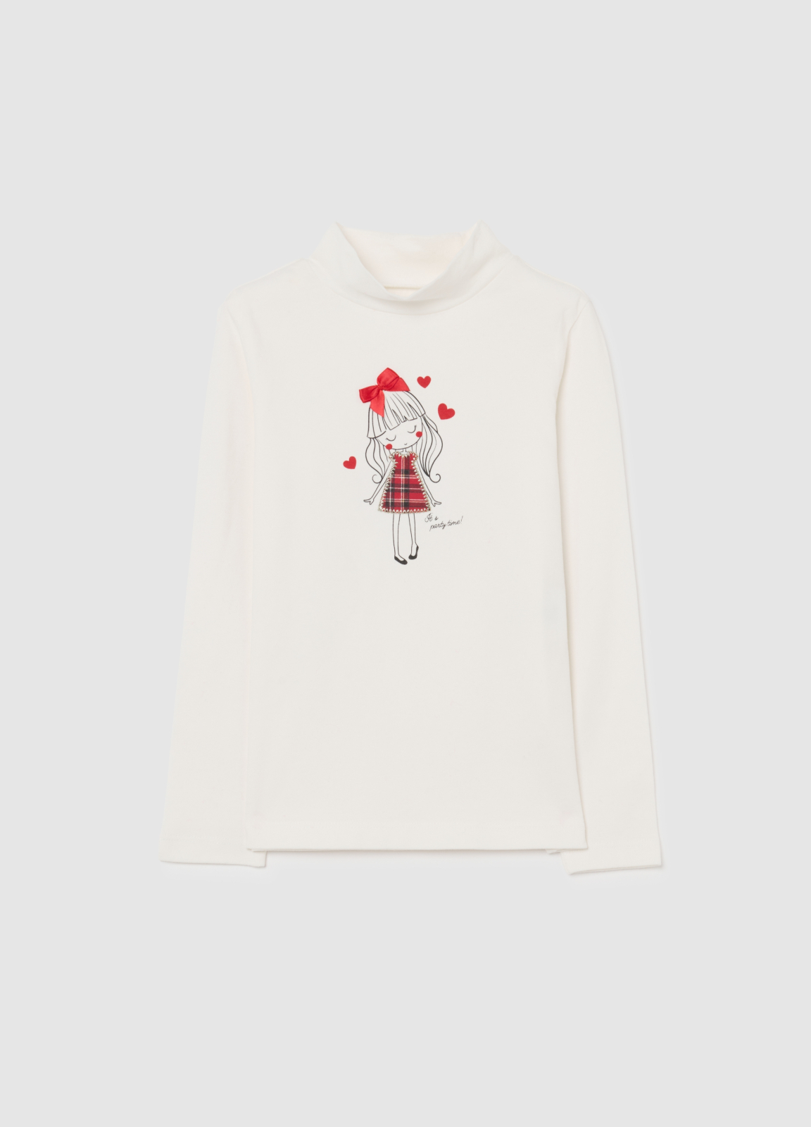 Тип продукта: Белая водолазка для девочек из хлопкового микса, стандартного кроя