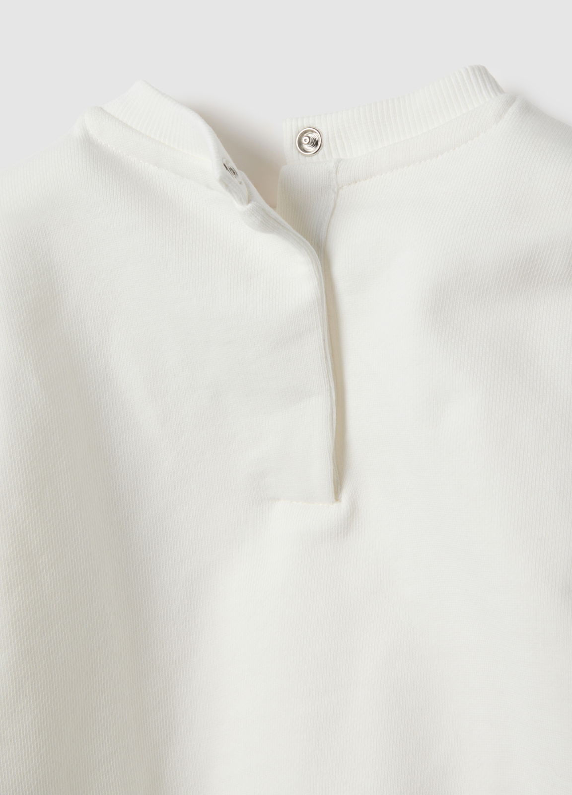 Характеристики: Белый свитшот из 100% хлопка линии Fagottino, идеален для девочек от 9 до 36 месяцев, для весны и лета. Классический дизайн с круглым вырезом и длинными рукавами с элегантными рюшами. Застежка на пуговицы сзади обеспечивает идеальную посадку и свободу движения.