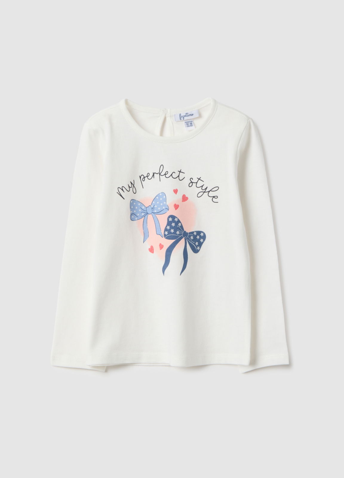 Характеристики: Белая футболка с длинным рукавом из линии Fagottino выполнена из чистого хлопка, идеально подходит для девочек от 9 до 36 месяцев. Весёлый принт добавляет радость в гардероб. Круглый вырез и застёжка на пуговицы сзади облегчают одевание. Практична и универсальна для повседневных занятий.