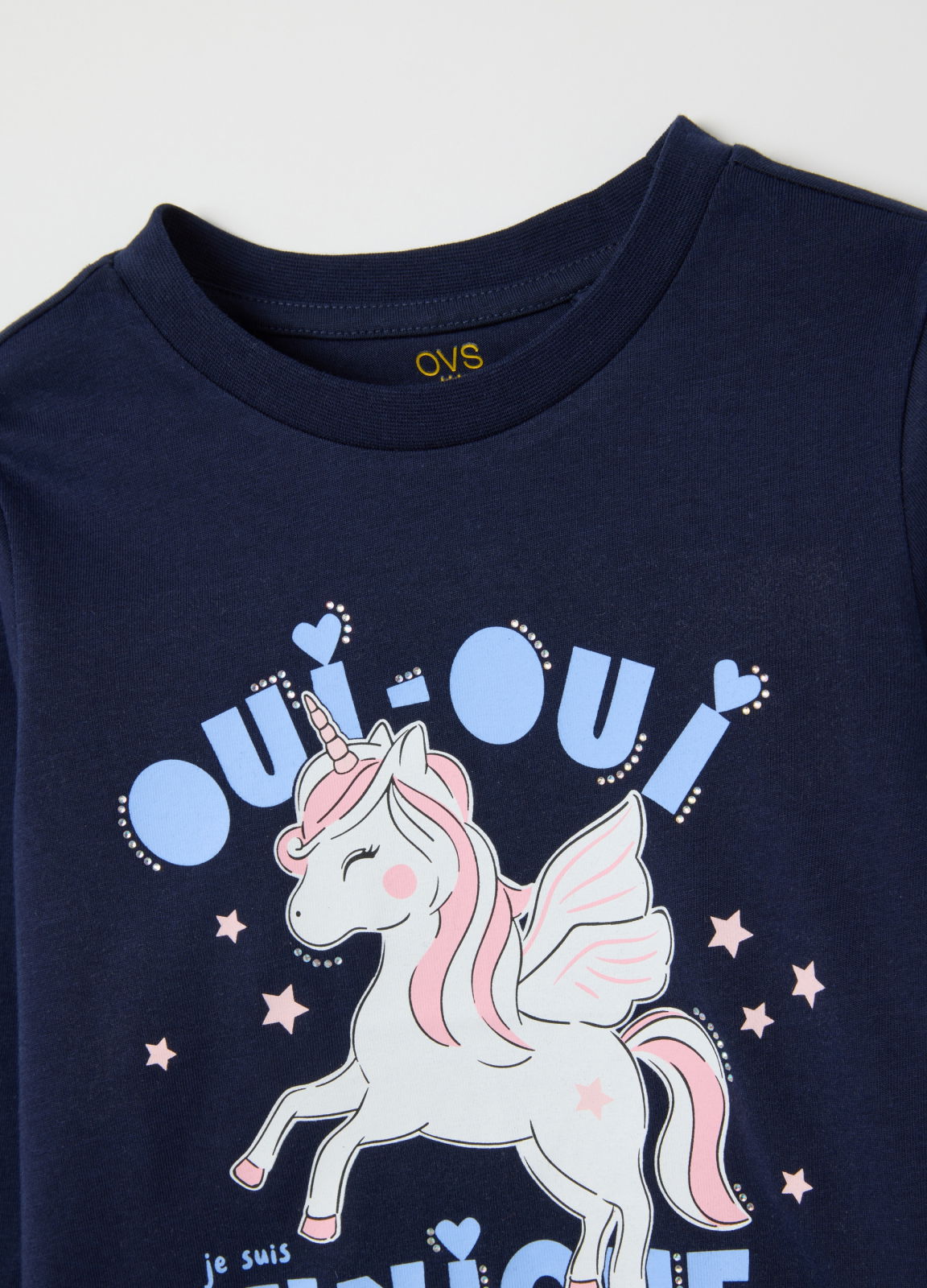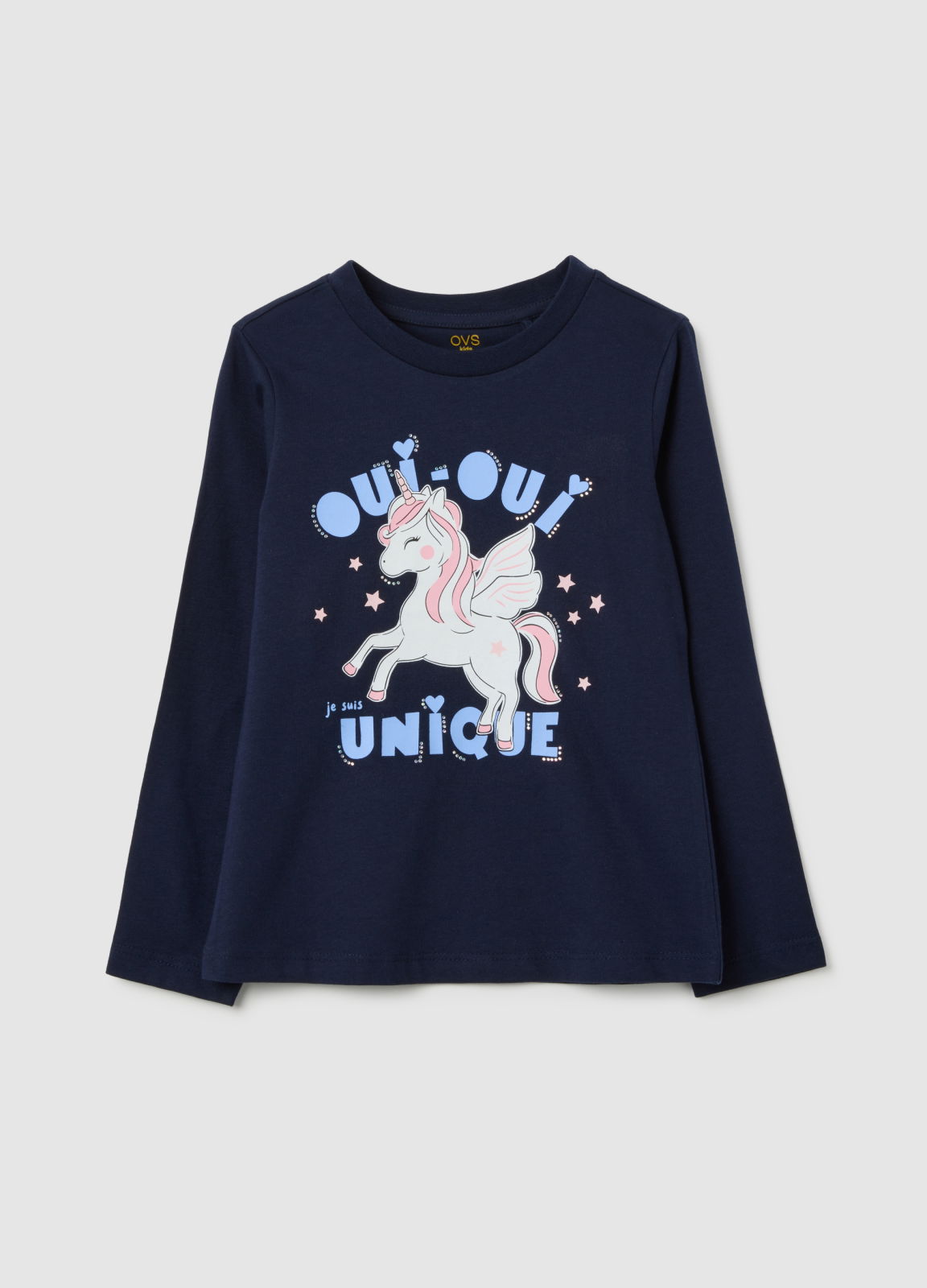 Характеристики: Синяя блузка с длинным рукавом и принтом единорога изготовлена из чистого хлопка, дарит комфорт и весёлое настроение девочкам в возрасте от 3 до 10 лет. Эта модель из линии OVS Kids выделяется качеством и привлекательным дизайном.