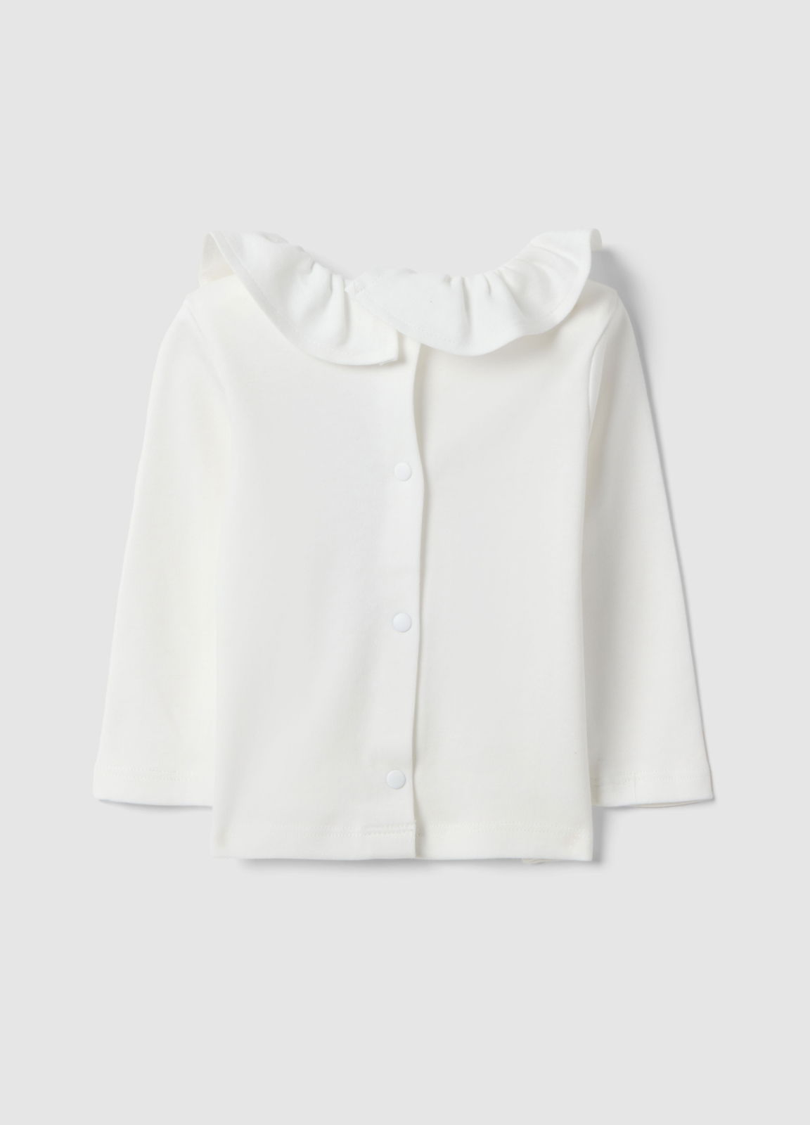 Характеристики: Белый топ с длинным рукавом из коллекции Disney предназначен для девочек-младенцев. Изготовлен из чистого хлопка, обеспечивает комфорт и воздухопроницаемость. Воротник с рюшами придаёт изюминку, а принт Minnie спереди подчёркивает дизайн. Подходит для весенне-летнего сезона, имеет стандартную посадку и удобную застёжку сзади.