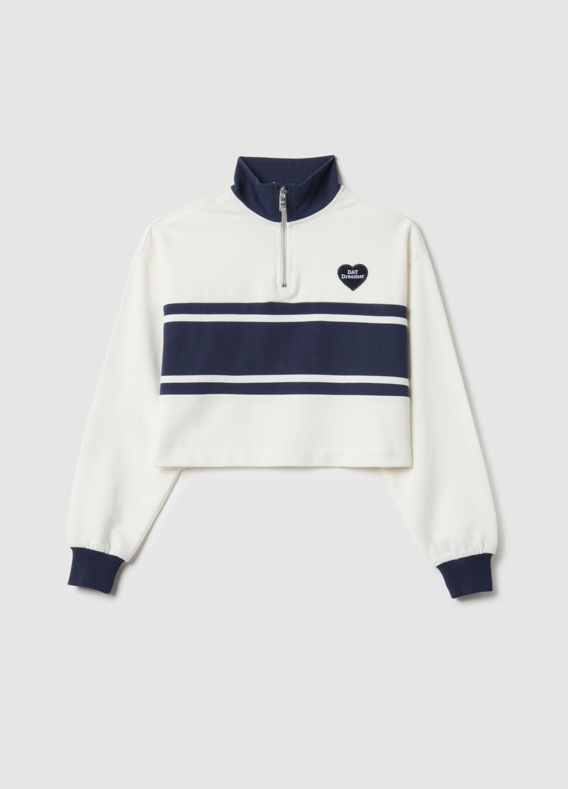 Характеристики: Многоцветный полосатый свитшот из линии OVS KIDS предназначен для девочек от 10 до 15 лет, изготовлен из чистого хлопка. Имеет укороченный крой с застежкой на половину молнии. Свободный крой обеспечивает комфорт и свободу движения, качество французского трикотажа делает его идеальным для климата между зимой и весной. Детали в полоску и аппликация в форме сердца добавляют уникальный стиль.