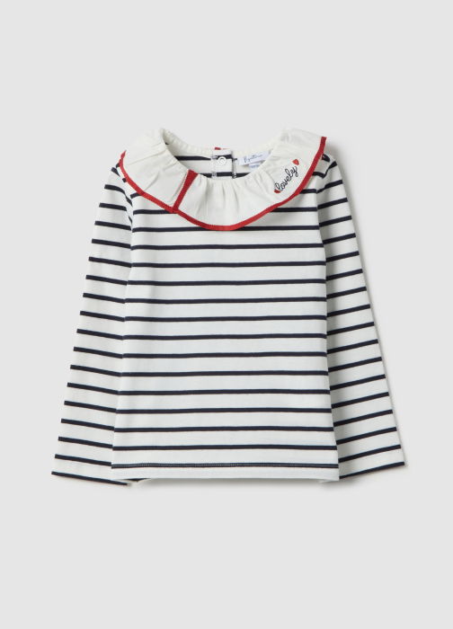 Тип продукта: Разноцветная полосатая хлопковая футболка для девочки с вышитым воротником