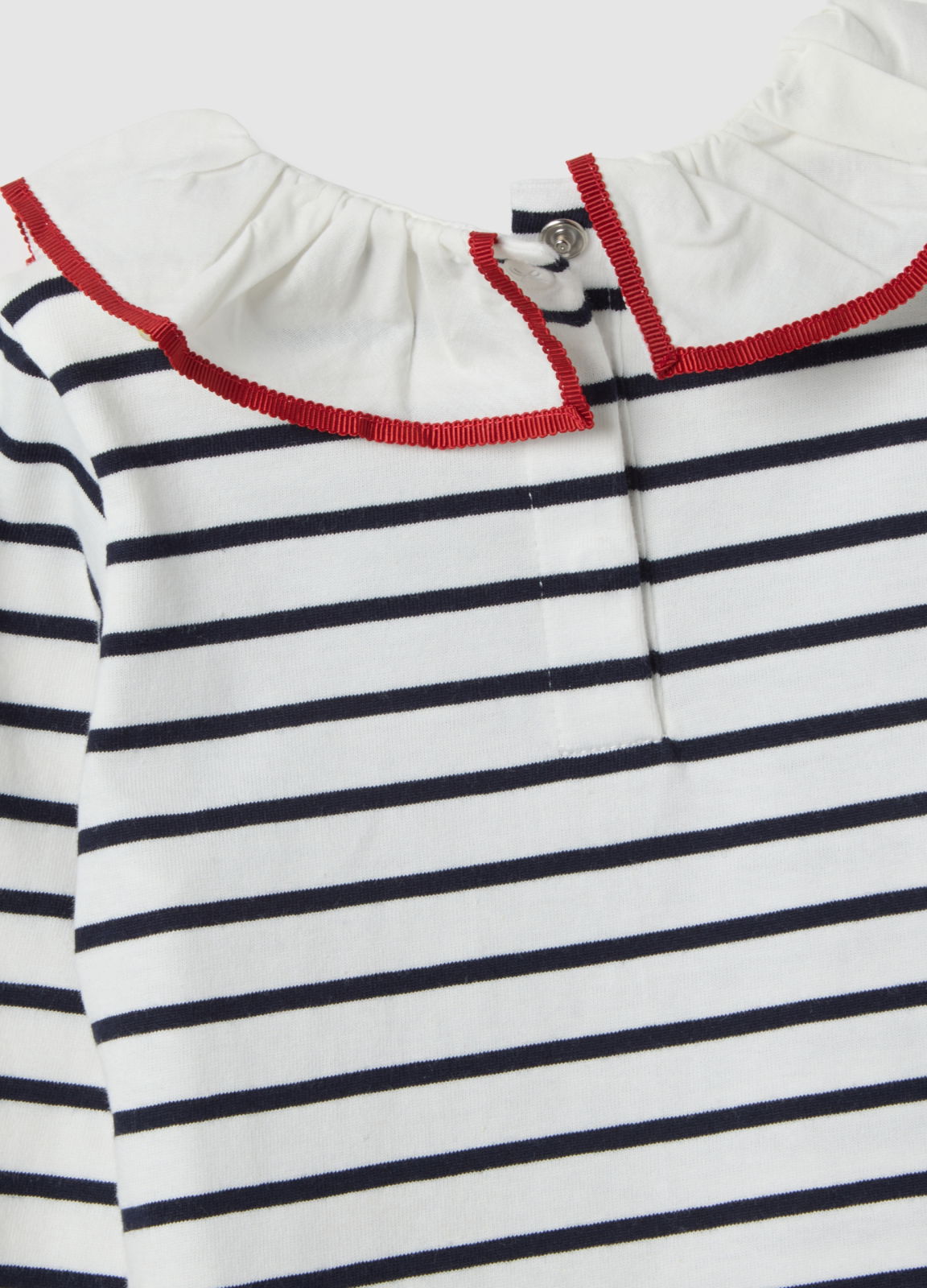 Характеристики: Длинный рукав, многоцветная полосатая футболка из линии Fagottino изготовлена из чистого хлопка, обеспечивая комфорт и дышимость для девочек от 9 до 36 месяцев. Дизайн украшен элегантной вышивкой «lovely» и имеет воротник с застежкой сзади для удобного одевания. Длинные рукава делают её идеальной для весны и лета, подходит для любого случая.