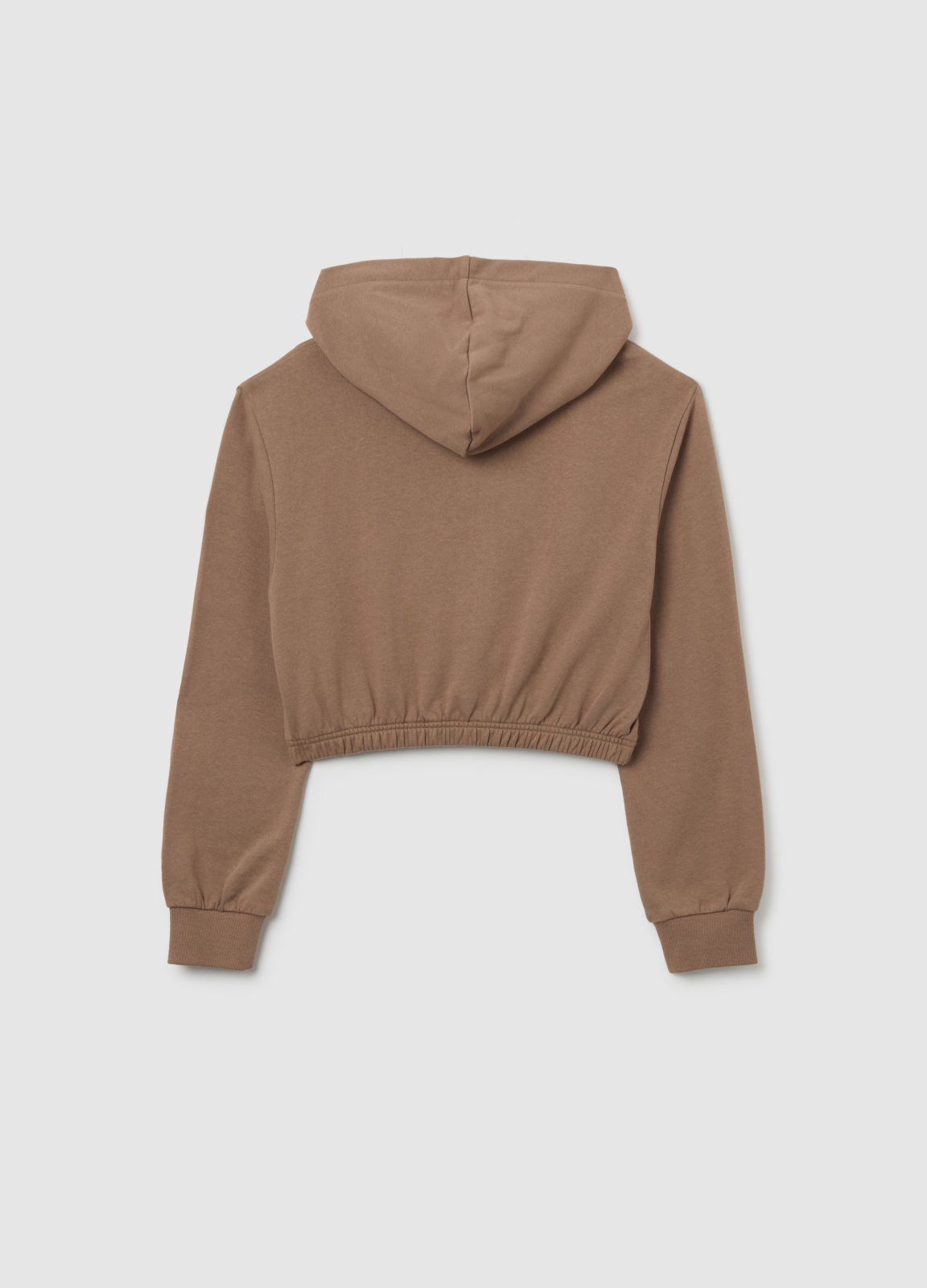 Тип продукта: Коричневое худи на молнии для девочек из хлопковой смеси, прилегающего кроя