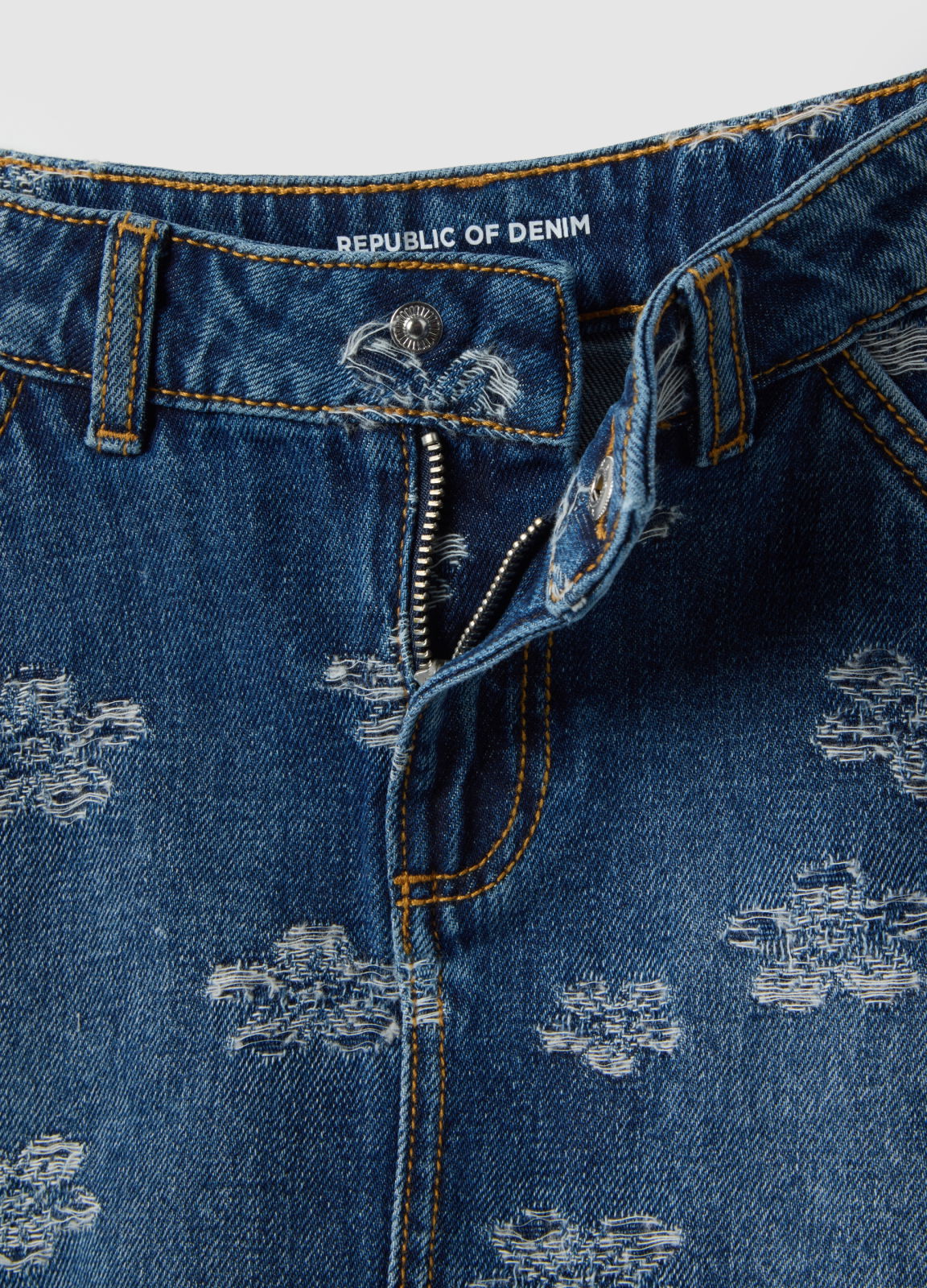 Тип продукта: Юбка из синего денима, 100% хлопок, с цветочным принтом для девочек, обычный крой