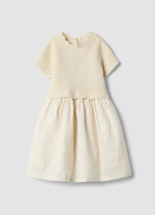 Характеристики: Бежевое платье для девочек из чистого хлопка от Fagottino идеально подходит для малышек от девяти до тридцати шести месяцев. Выполненное с вниманием к деталям, оно оснащено удобной застёжкой на пуговицы сзади и элегантным круглым вырезом. Частичная подкладка обеспечивает комфорт и лёгкость в летний сезон, а короткие рукава сохраняют ощущение свежести. Идеально подходит для создания утончённого и практичного образа.