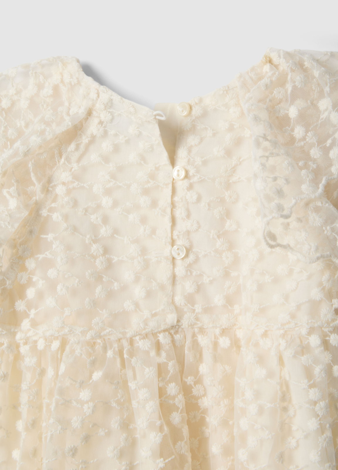 Характеристики: Длинное бежевое платье из линии Fagottino идеально для девочек от 9 до 36 месяцев, подходит для особых случаев. Сделано из смеси хлопка, имеет сетчатую ткань с рельефными деталями, которые добавляют оригинальности гардеробу. Застежка на пуговицы сзади облегчает одевание, а длинные рукава обеспечивают комфорт и тепло. Изысканная вещь для любого важного события.
