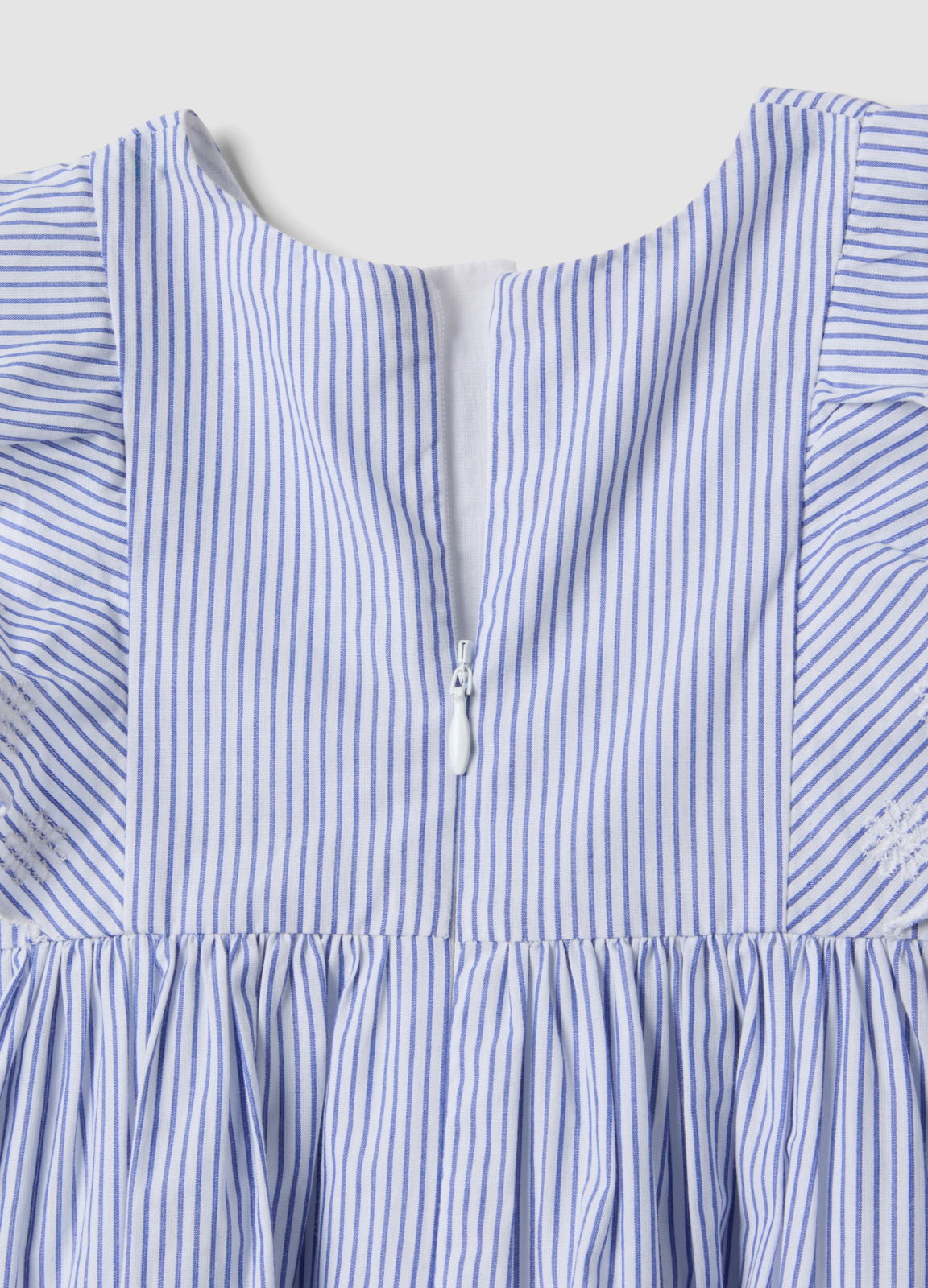 Характеристики: Откройте для себя очаровательное разноцветное платье в полоску из линии Fagottino, изготовленное из чистого хлопка для комфорта и свежести, идеально подходящее для девочек от 9 до 36 месяцев. Полосатый дизайн дополнен элегантными оборками на рукавах, добавляющими изысканный акцент. Застёжка-молния сзади облегчает одевание, делая платье идеальным для летнего сезона. Одежда, сочетающая стиль и практичность.