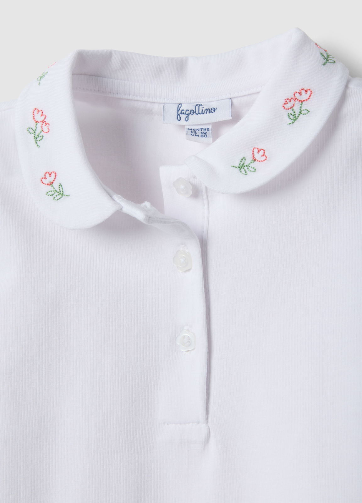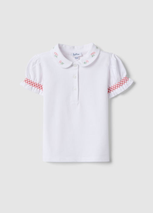 Тип продукта: Поло для девочек белое, стрейч, 100% хлопок, обычный крой с вышивкой