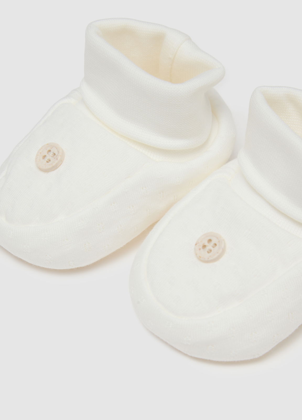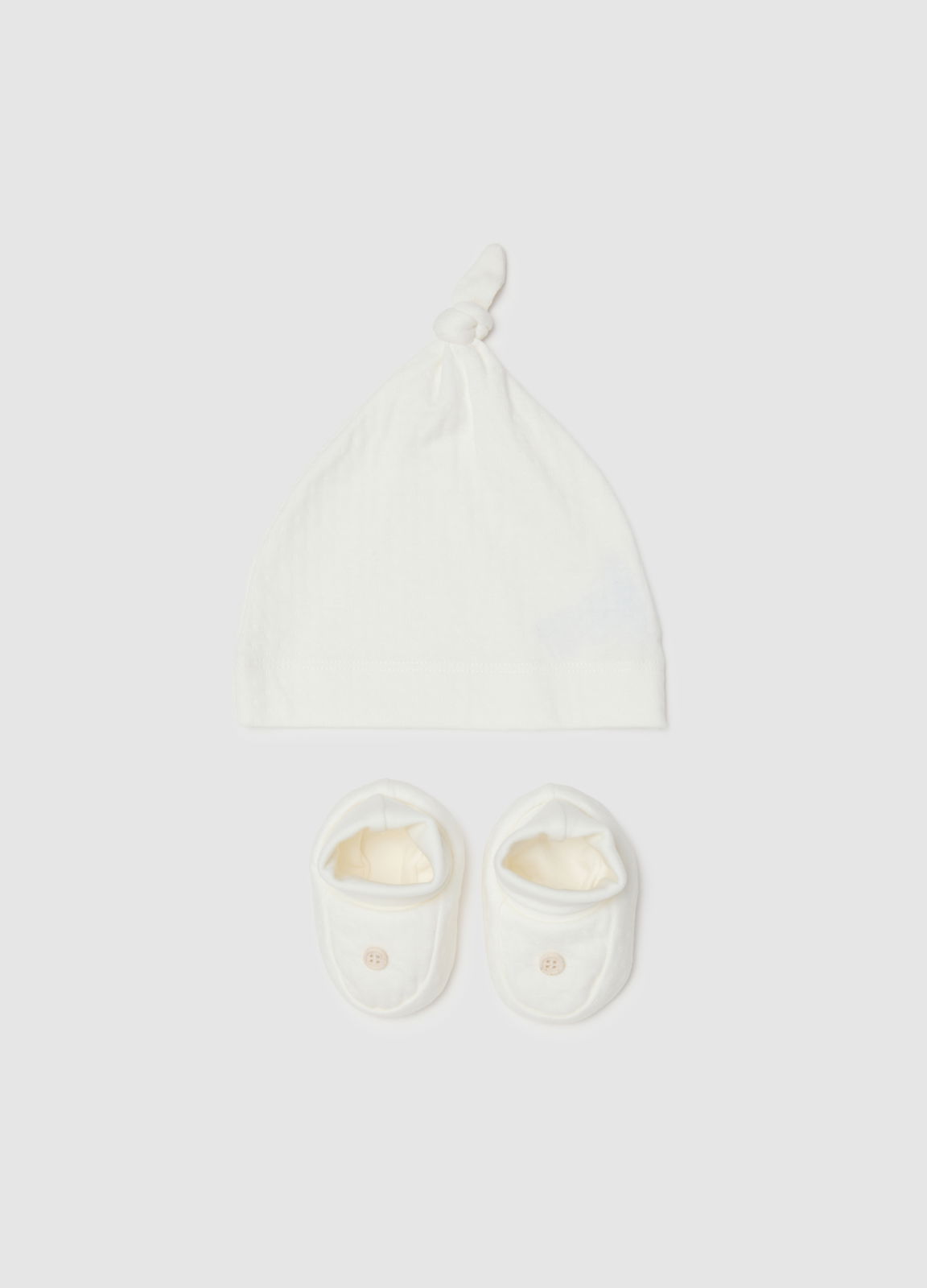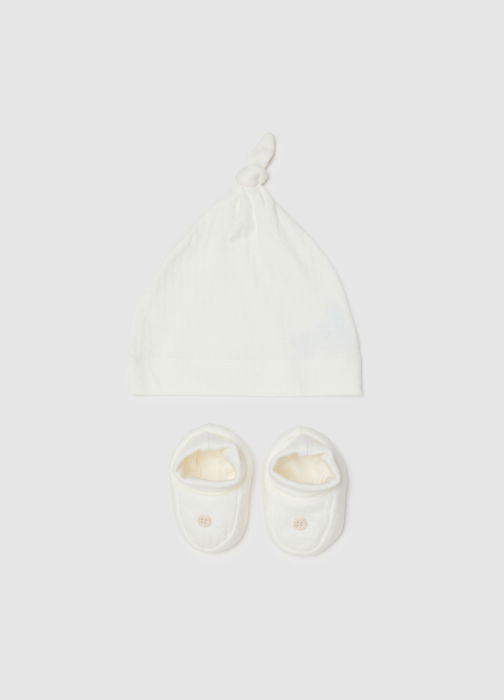 Тип продукта: Набор белой детской шапочки и пинеток из хлопка, обычная посадка