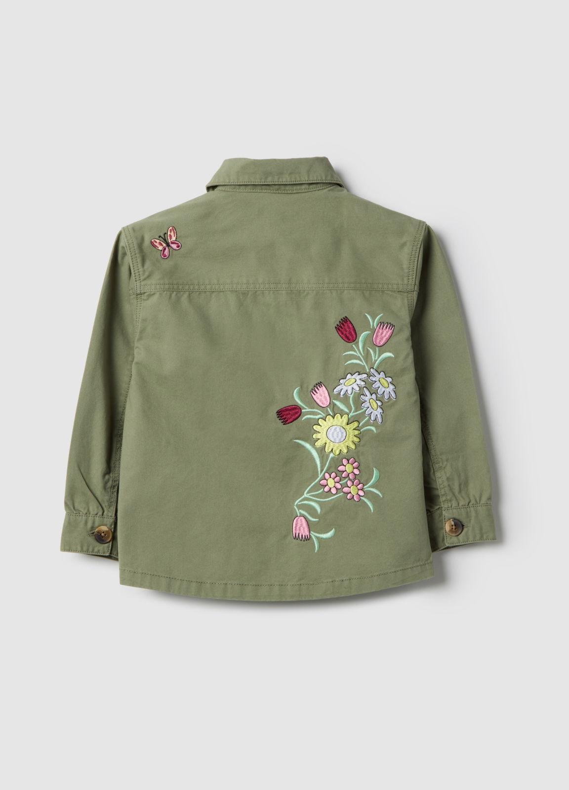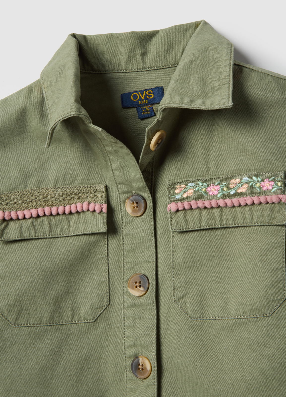 Тип продукта: Легкая зеленая хлопковая куртка для девочек, обычный крой с вышивкой