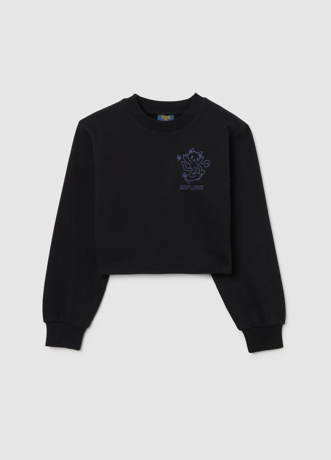 Тип продукта: Чёрный хлопковый свитер для девочек, прямой крой, круглый вырез