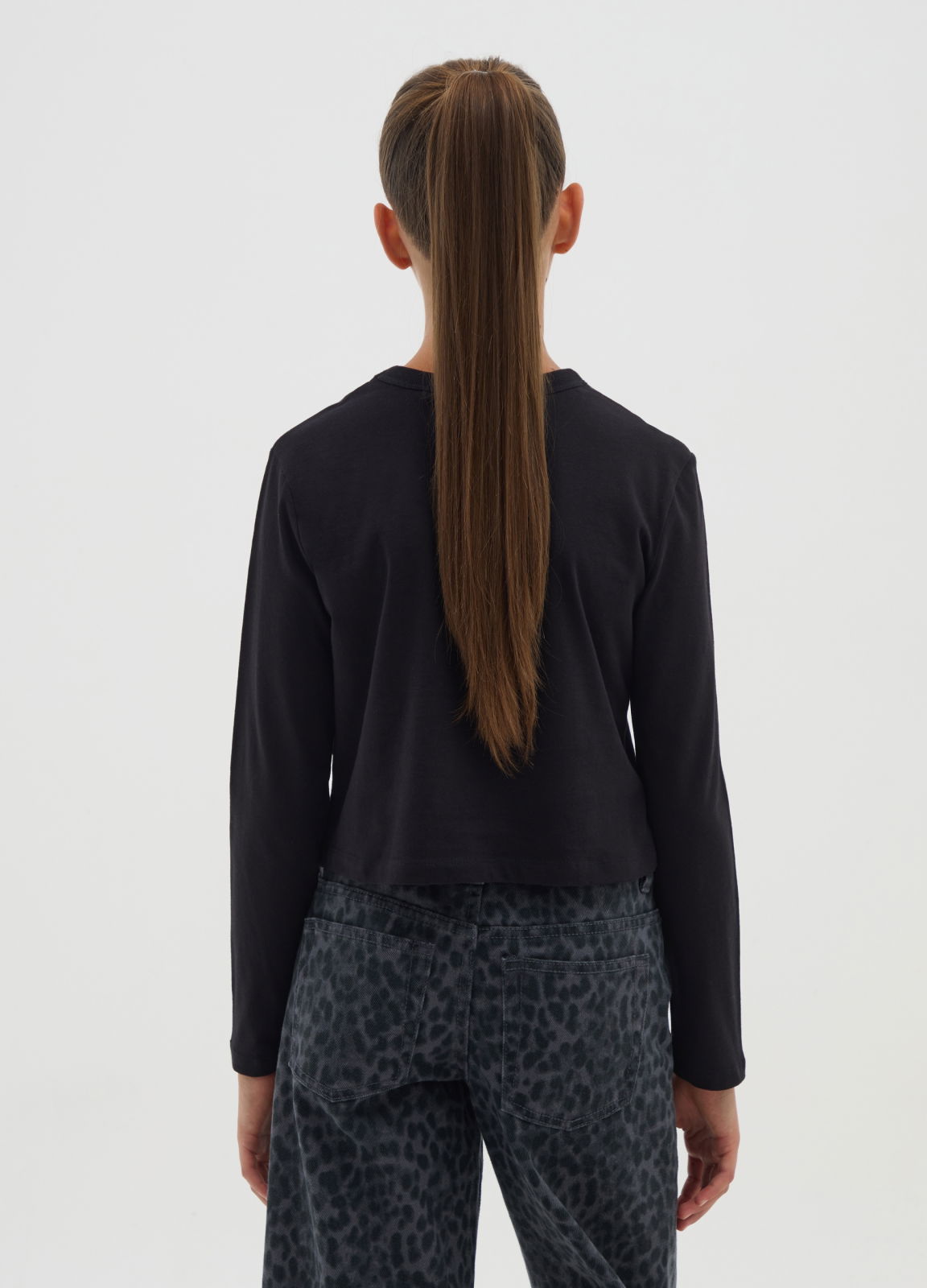 Тип продукта: Девочки черный хлопковый топ с длинным рукавом