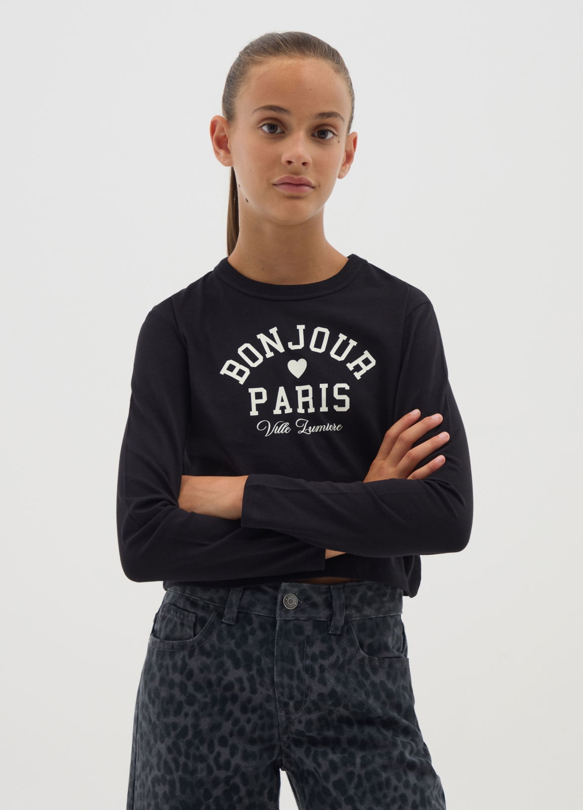 Характеристики: Черный топ с длинным рукавом из линии OVS Kids для девочек 10-15 лет. Из чистого хлопка, с веселым принтом спереди, добавляющим нотку игривости образу. Круглый вырез и обычный крой делают его идеальным для повседневного и непринужденного наряда.
