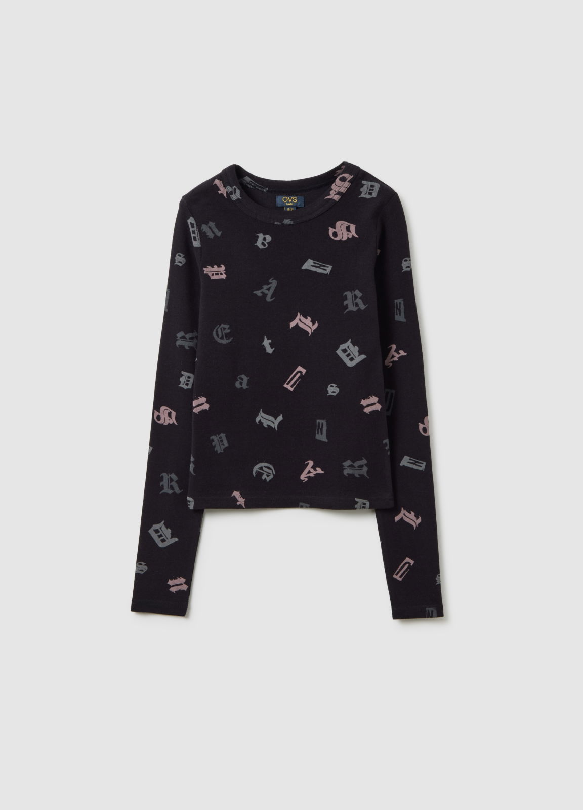 Тип продукта: Черная футболка из стрейч-хлопка для девочек, обычный крой