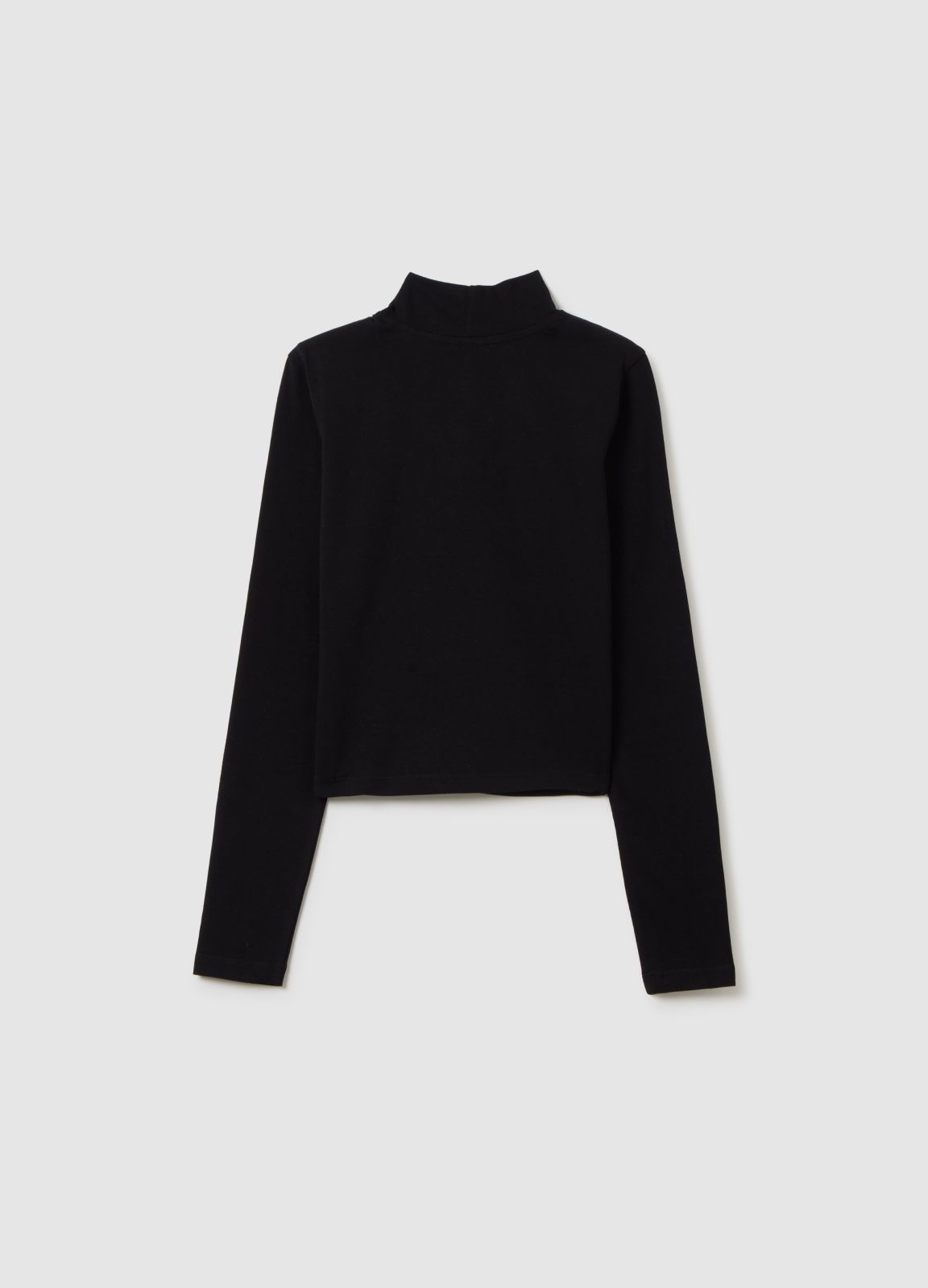 Характеристики: Чёрная футболка с длинными рукавами линии OVS Kids для девочек 10–15 лет из эластичного хлопка, тёплый воротник, универсальный элемент для осени и зимы