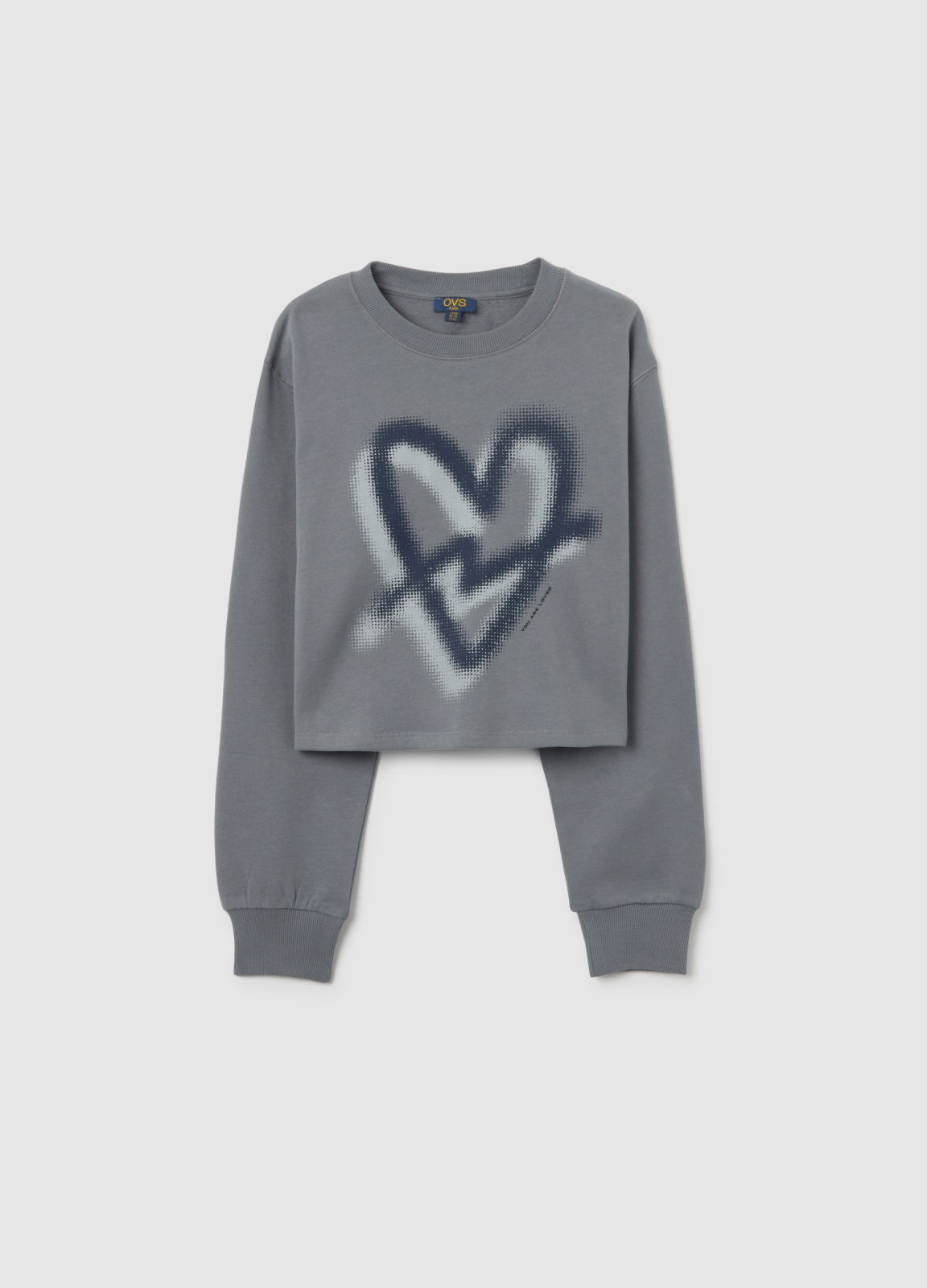 Тип продукта: Серый свитшот для девочек, 100% хлопок, прямой крой, с принтом сердца