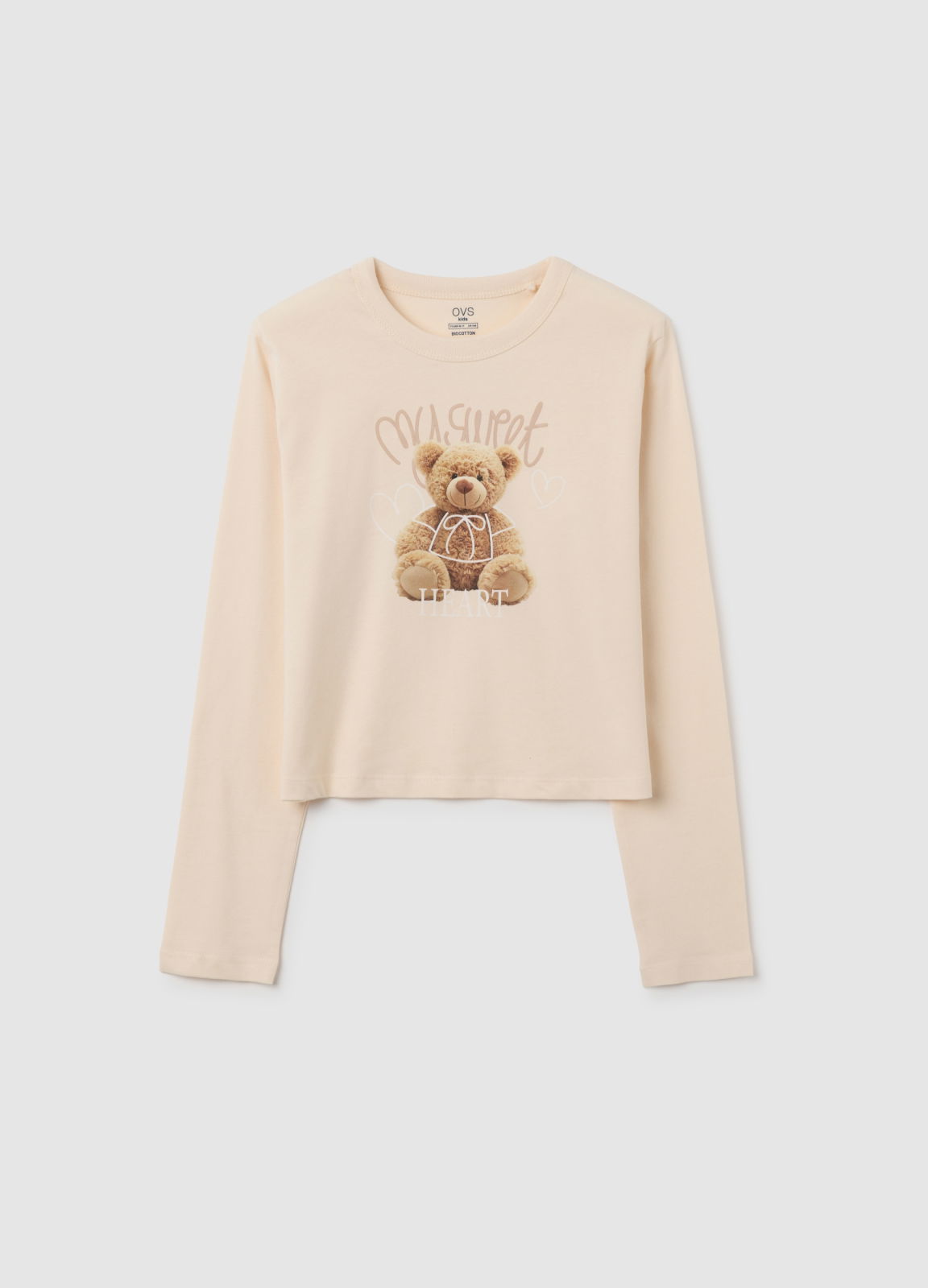 Тип продукта: Бежевая хлопковая футболка для девочек с принтом