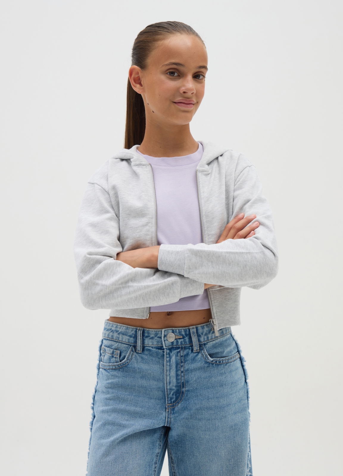 Тип продукта: Серое худи для девочек из хлопка с облегающим кроем