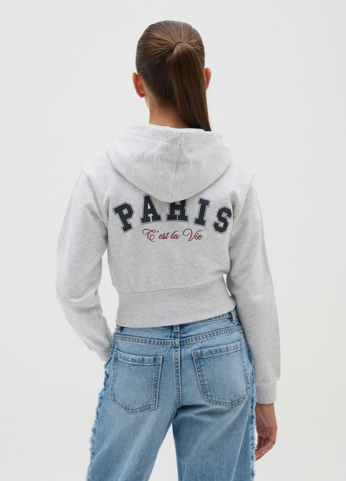 Характеристики: Короткое серое худи из линии OVS Kids для девочек 10–15 лет. Сделано из хлопка, с повседневным и современным дизайном, украшено надписью «Paris» на спине, что придает городской стиль. Облегающий крой идеально подходит для молодого и динамичного образа.