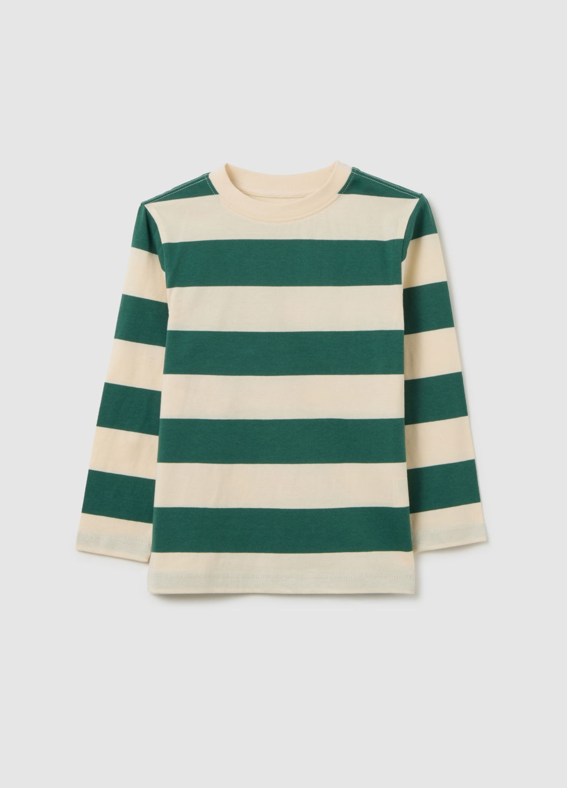 Характеристики: Многоцветная полосатая футболка из линии OVS Kids выполнена из чистого хлопка, обеспечивая мягкость и комфорт для детей от 3 до 10 лет. Простой дизайн с круглым вырезом и длинными рукавами делает её идеальной для повседневной носки. Обычный крой гарантирует универсальность и удобство, идеально подходит для любого случая.