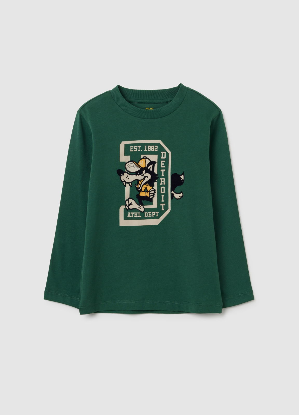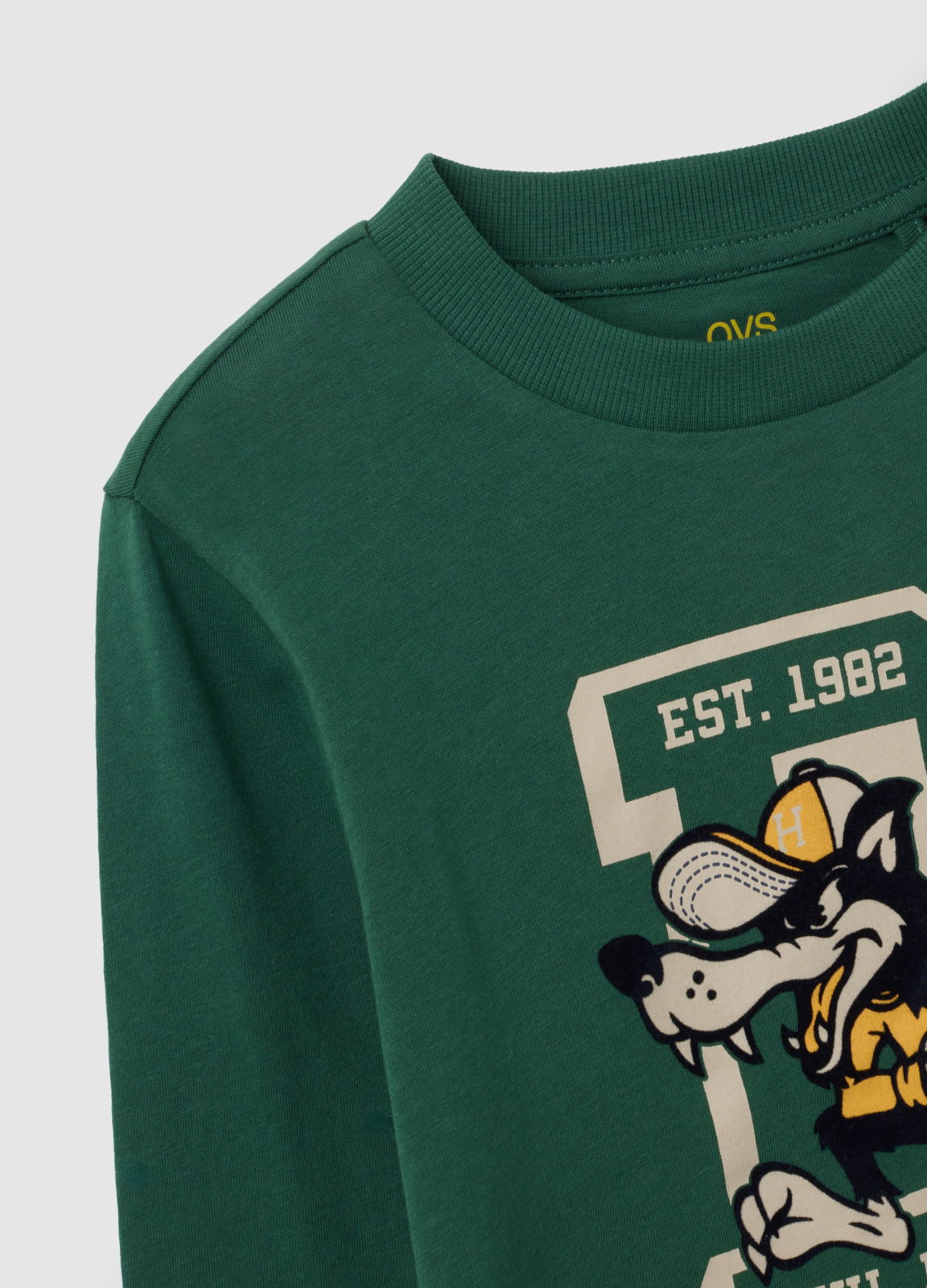 Характеристики: Зелёная футболка с длинными рукавами из линии OVS KIDS для детей 3–10 лет. Из чистого хлопка, обеспечивает комфорт и воздухопроницаемость. Круглый вырез и весёлый принт спереди. Максимальная свобода движений, идеально для прохладных дней.