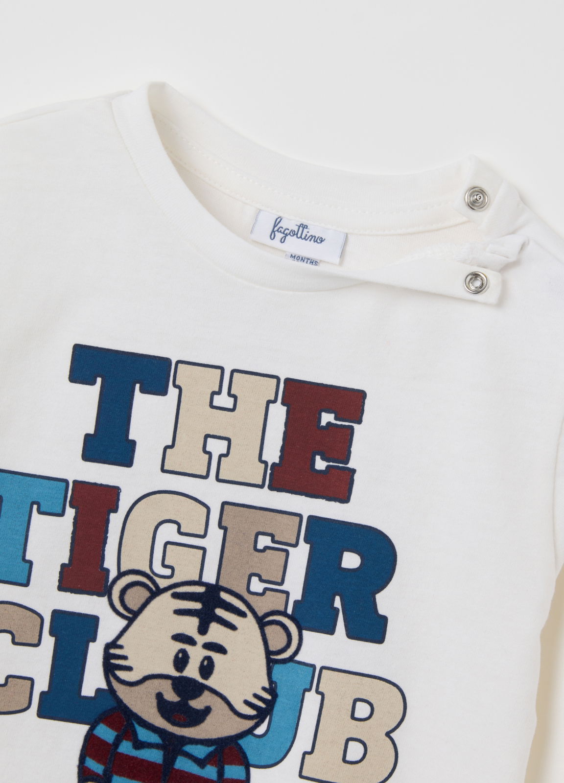 Характеристики: Белая футболка с длинными рукавами из линии Fagottino предназначена для детей от 9 до 36 месяцев. Изготовлена из чистого хлопка, обеспечивает мягкость и комфорт. Круглый вырез и пуговицы делают её удобной в повседневном использовании. Входит в коллекцию осень/зима, идеально подходит для прохладных дней. На передней части изображён симпатичный мишка.